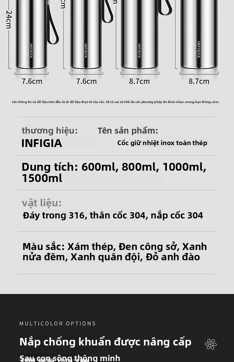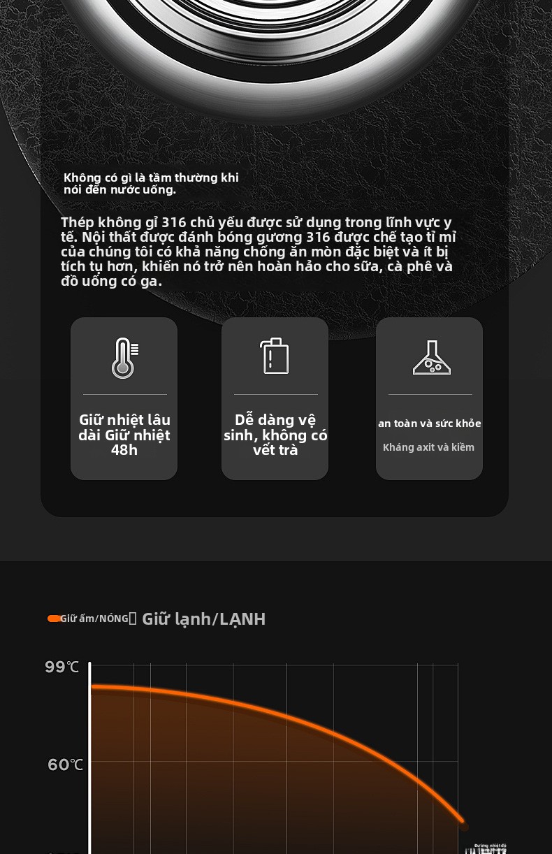 Cốc giữ nhiệt 316 cốc giữ nhiệt bằng thép không gỉ đi làm sinh viên xách tay cỡ lớn với thì