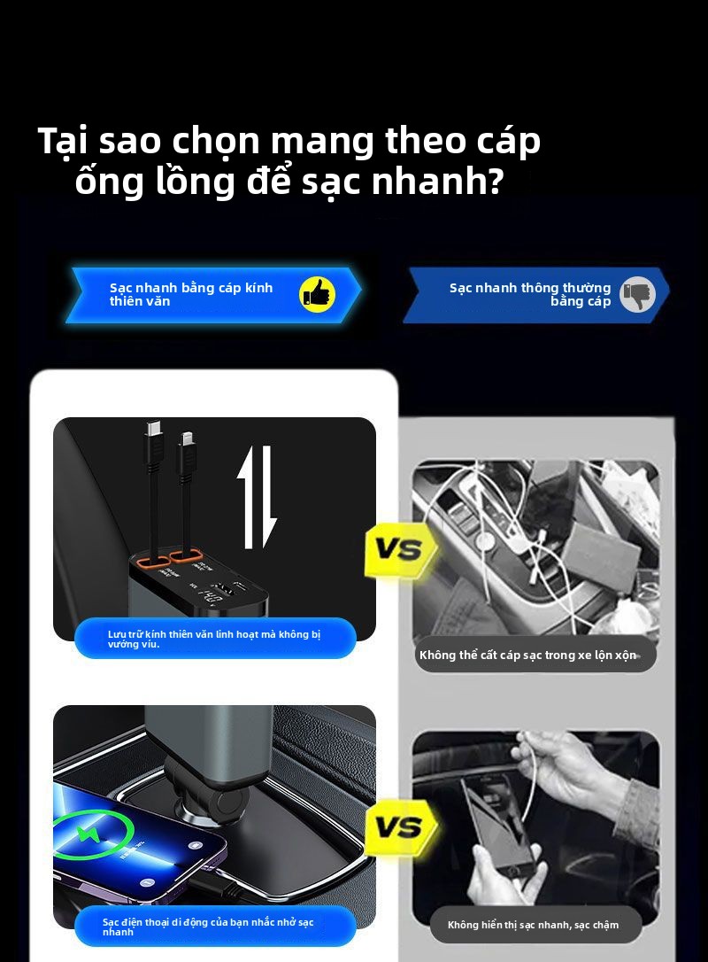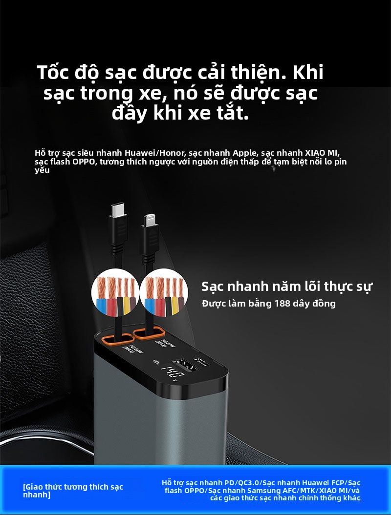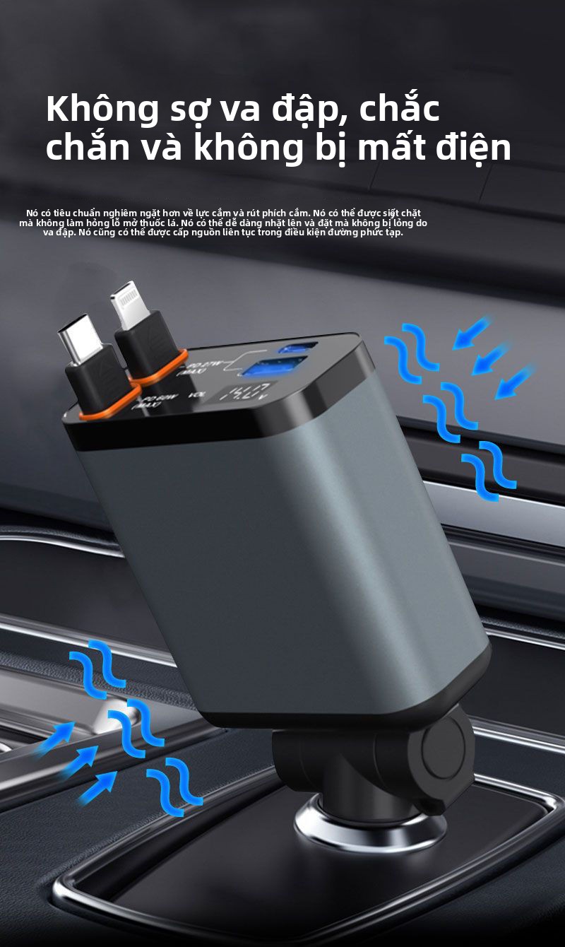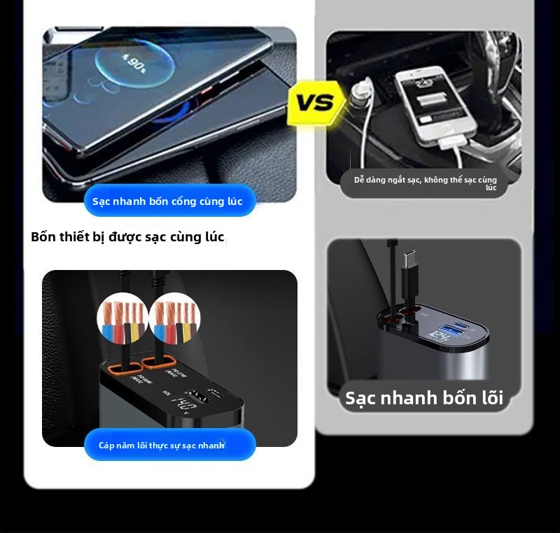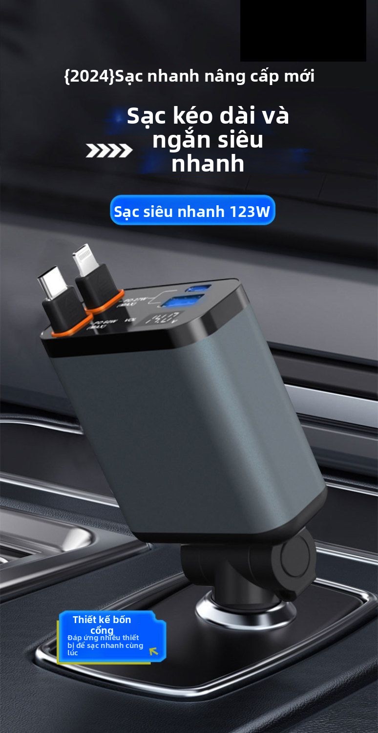 Bộ sạc xe sạc siêu nhanh 120W 4 trong 1 đi kèm với dây Android Apple có th