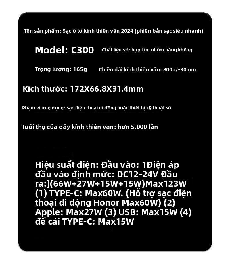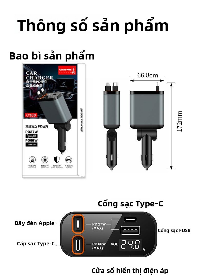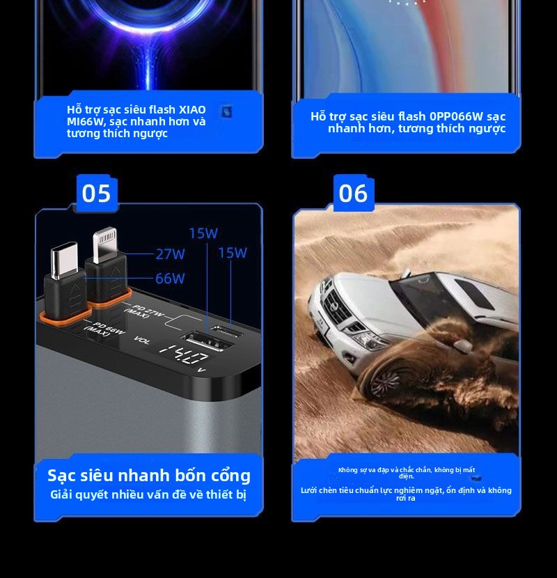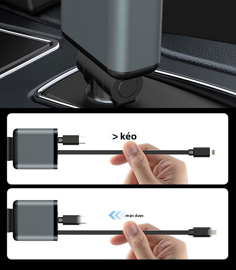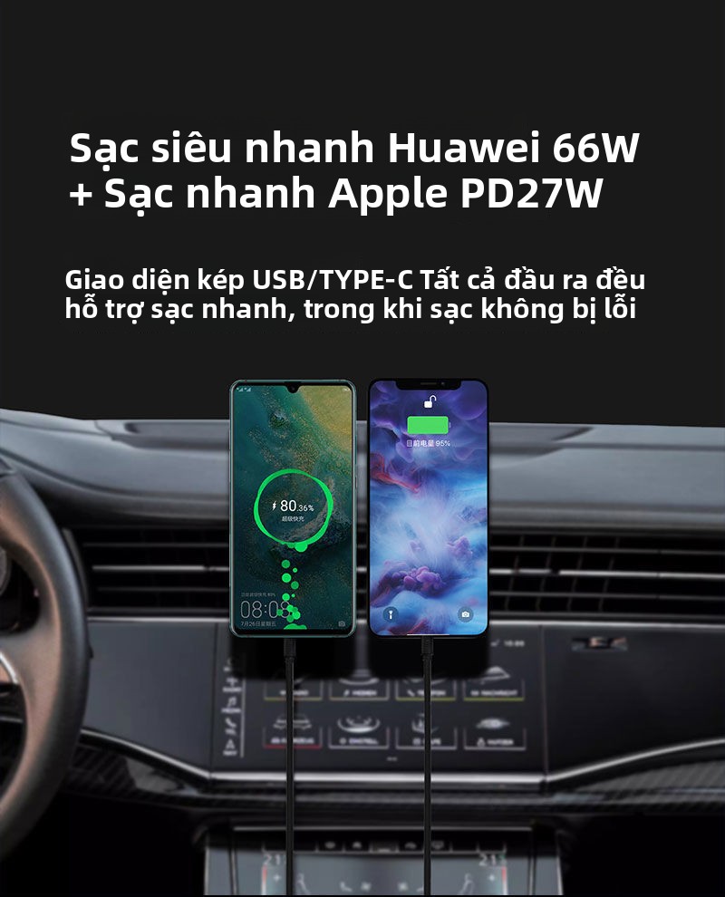 Bộ sạc xe sạc siêu nhanh 120W 4 trong 1 đi kèm với dây Android Apple có th