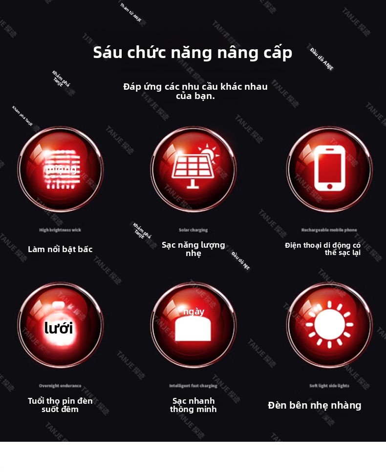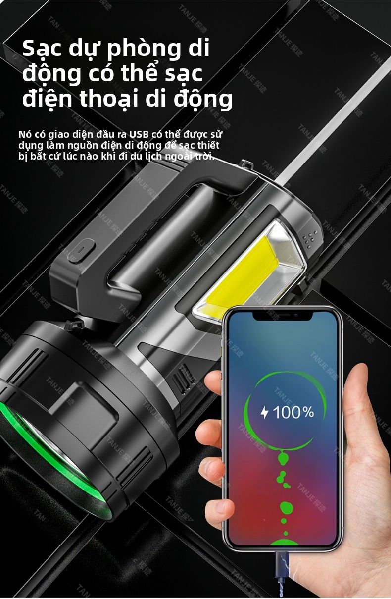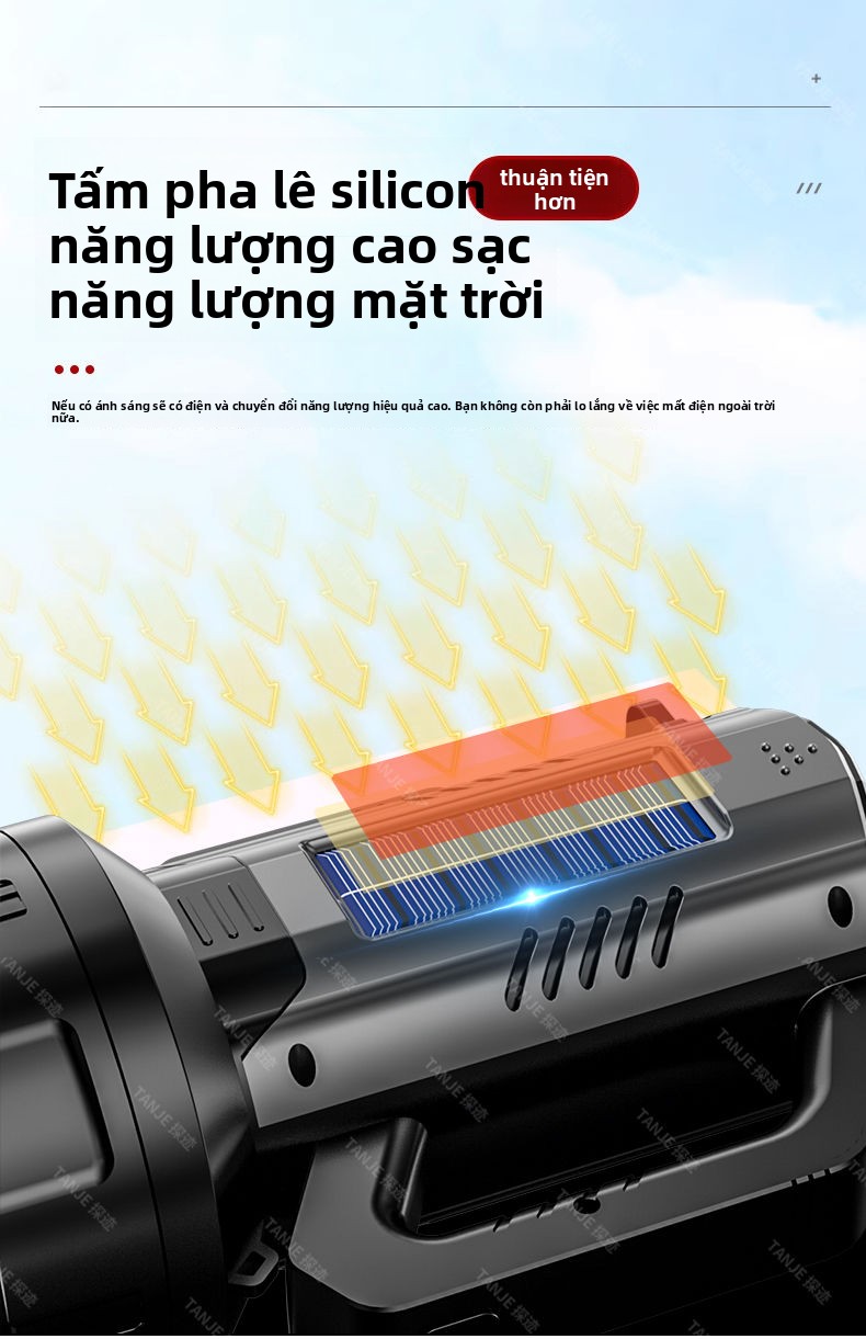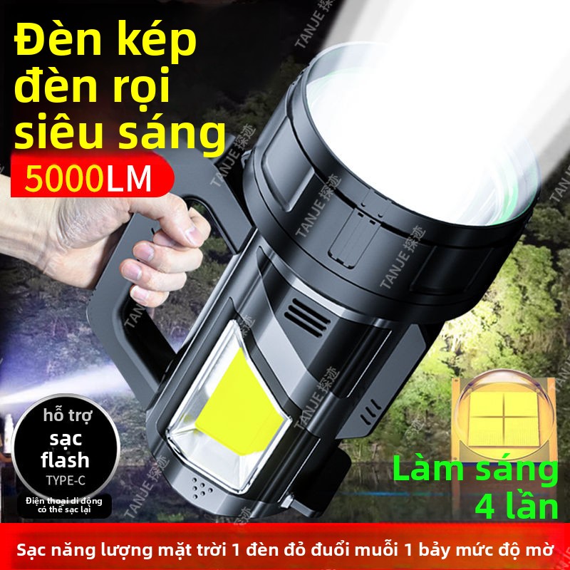 Đèn pin USB năng lượng mặt trời phiêu lưu ngoài trời sạc đèn xách tay đèn pha đa chức năng đèn báo