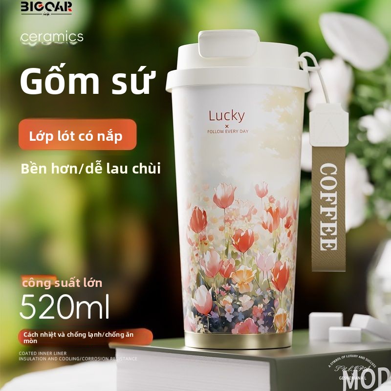 Bình giữ nhiệt bằng gốm Bigcar Cốc cà phê 304 thép không gỉ ống hút giá trị màu sắc cao