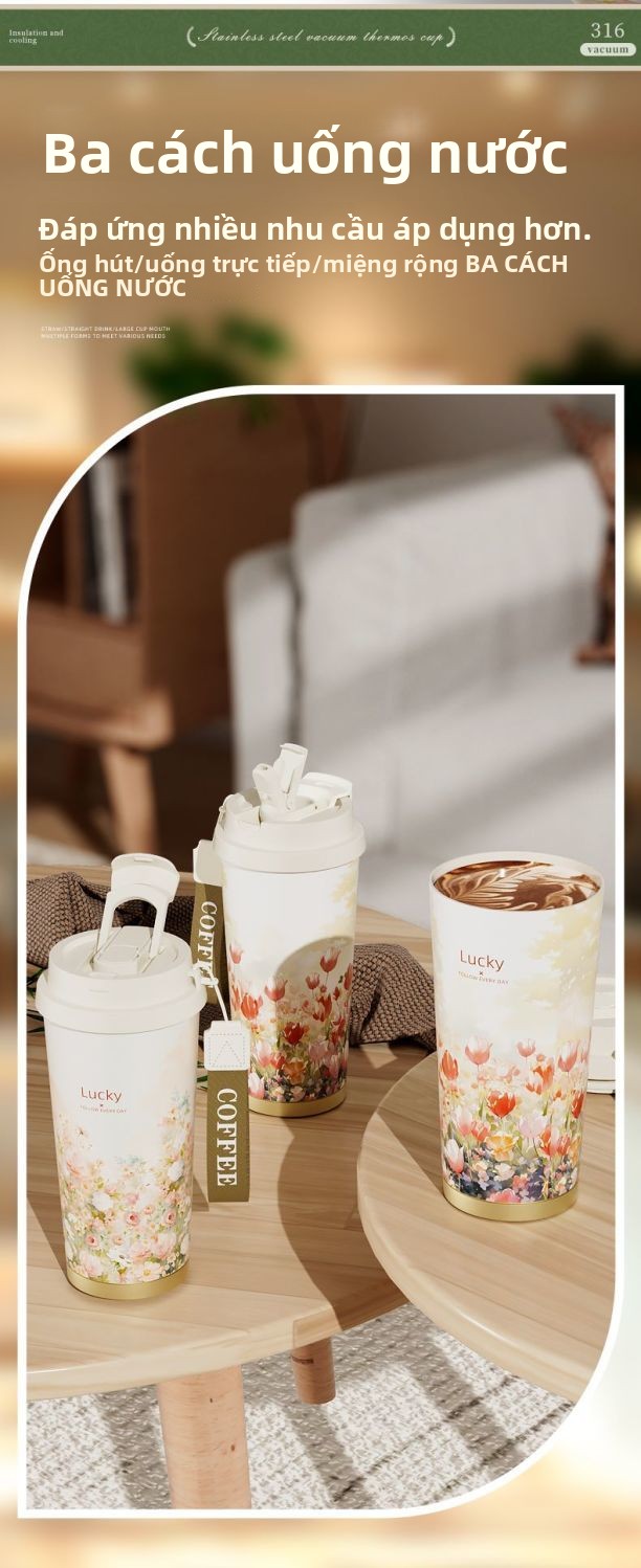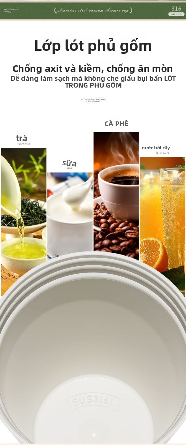 Cốc giữ nhiệt 316 cốc giữ nhiệt bằng thép không gỉ đi làm sinh viên xách tay cỡ lớn với thì