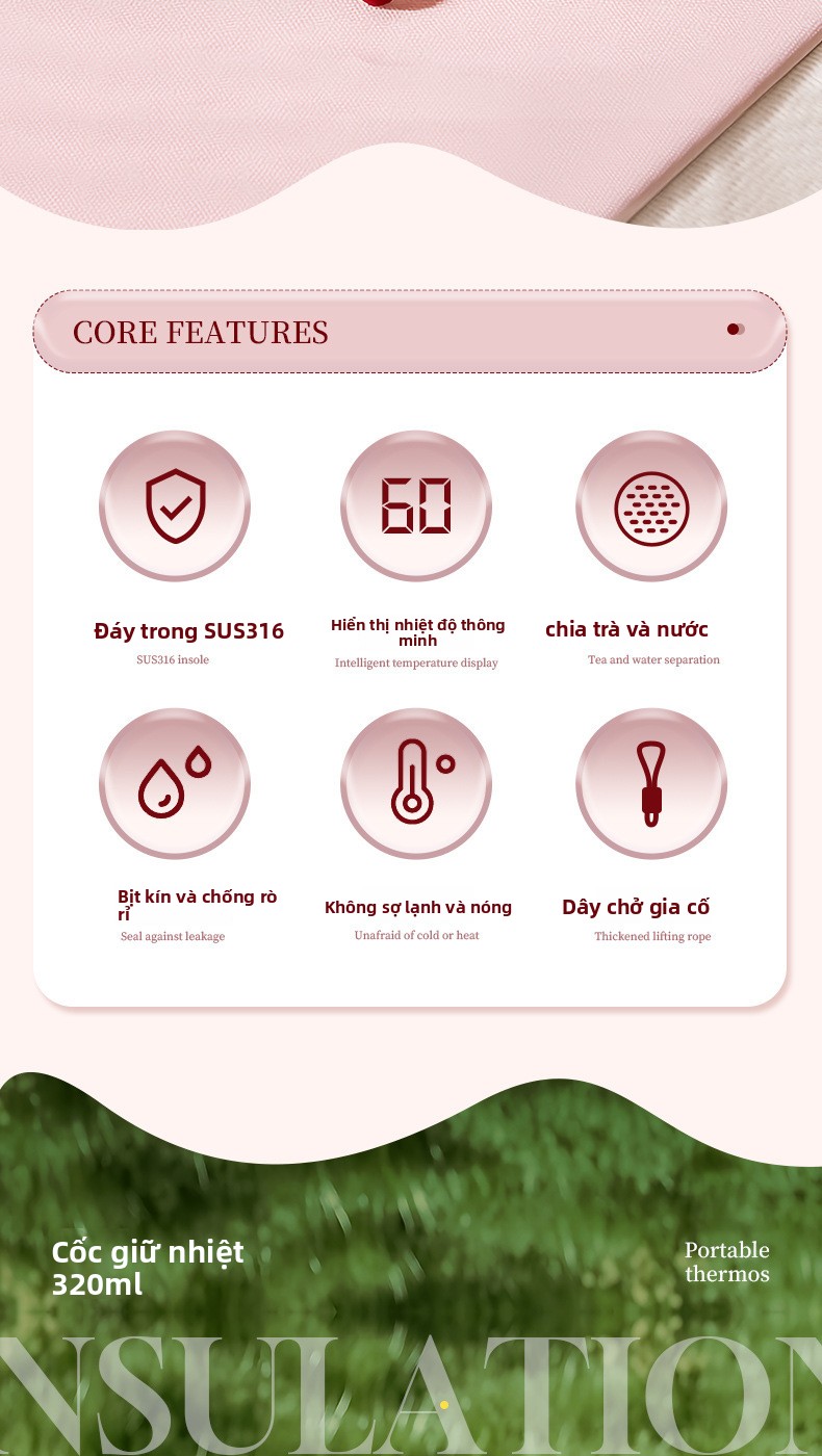 Cốc giữ nhiệt thông minh hiển thị nhiệt độ cốc giữ nhiệt dành riêng cho sinh viên tách nước trà pha trà c
