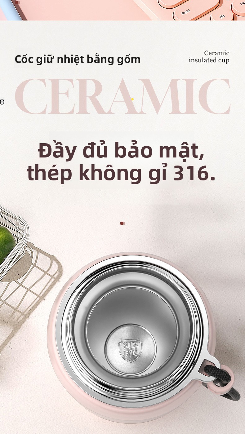 Cốc giữ nhiệt 316 cốc giữ nhiệt bằng thép không gỉ đi làm sinh viên xách tay cỡ lớn với thì