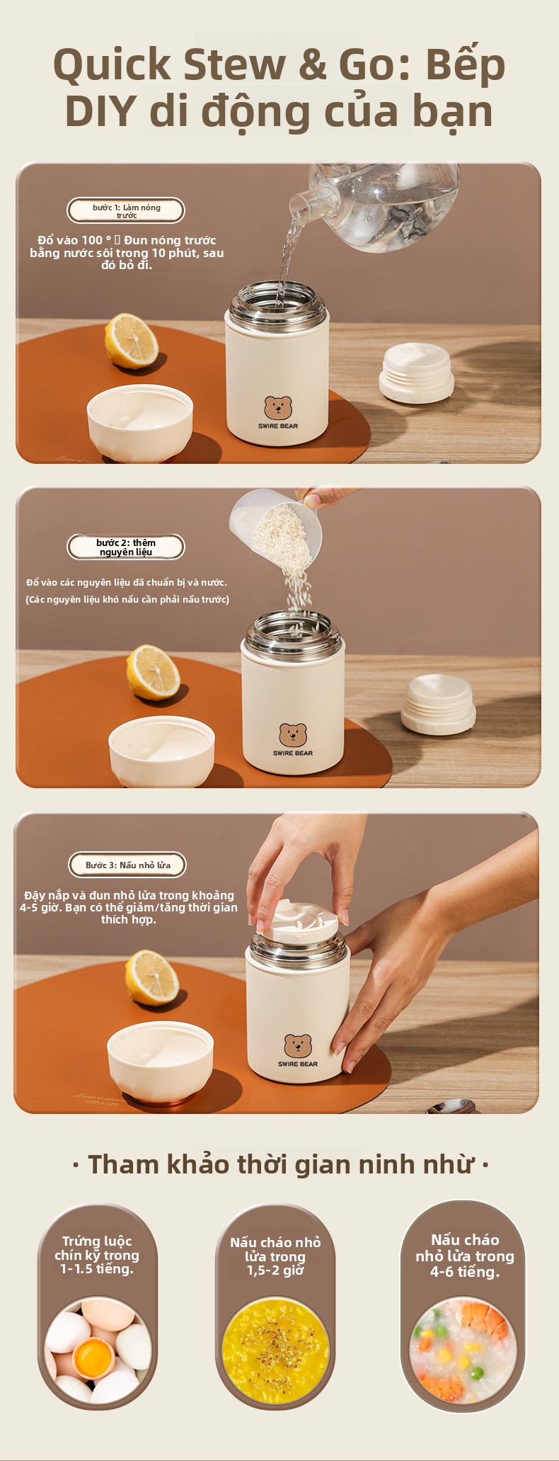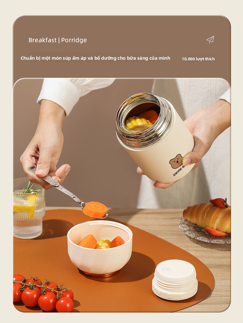 Cốc giữ nhiệt dài giữ nhiệt hộp cơm thùng nhân viên văn phòng 24 giờ flagship chính thức cốc ăn sáng