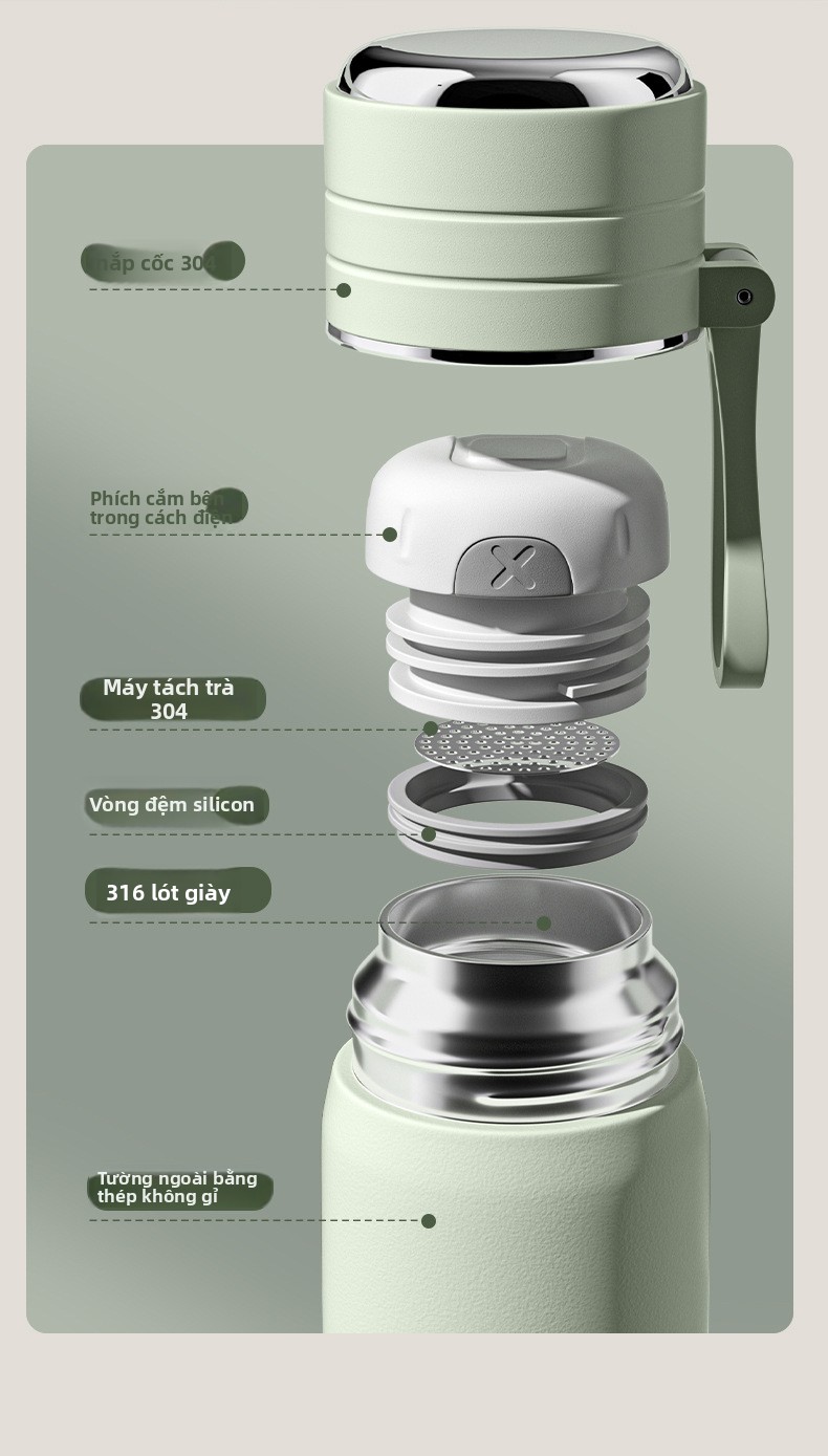 Cốc giữ nhiệt 316 cốc giữ nhiệt bằng thép không gỉ đi làm sinh viên xách tay cỡ lớn với thì