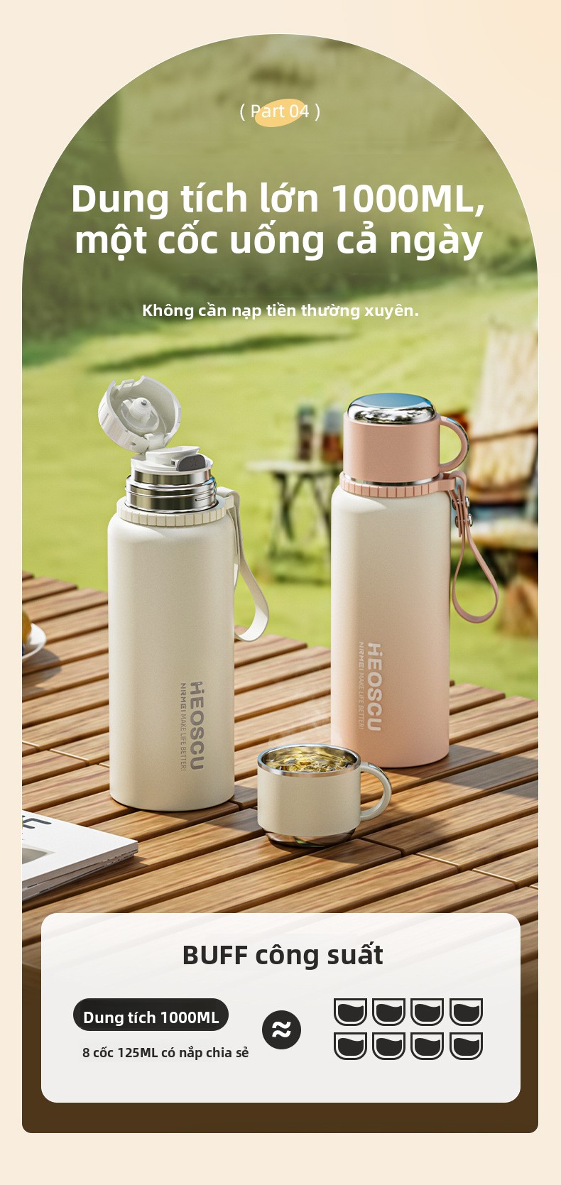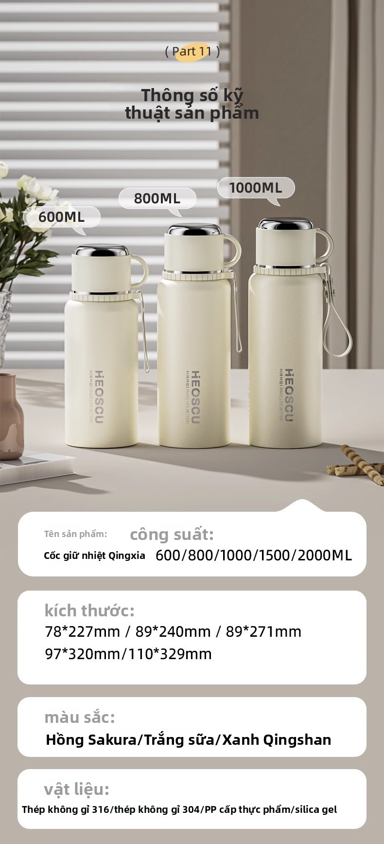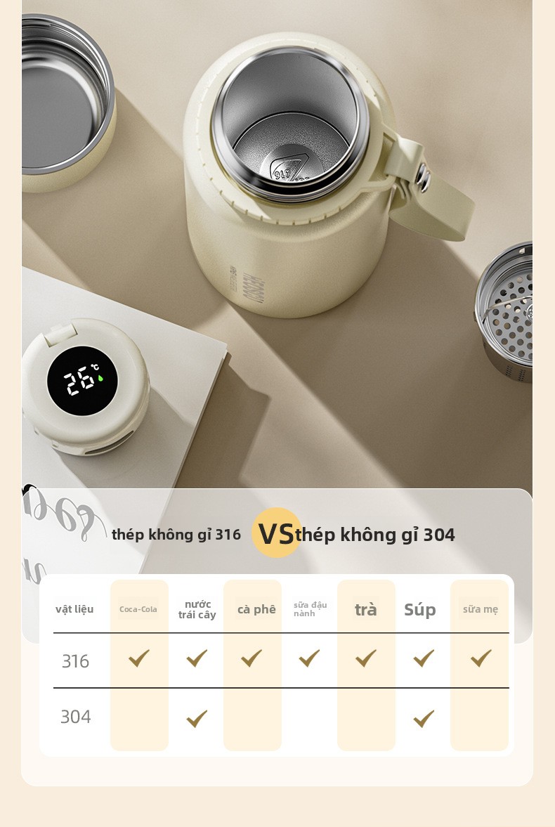 Cốc giữ nhiệt 316 cốc giữ nhiệt bằng thép không gỉ đi làm sinh viên xách tay cỡ lớn với thì