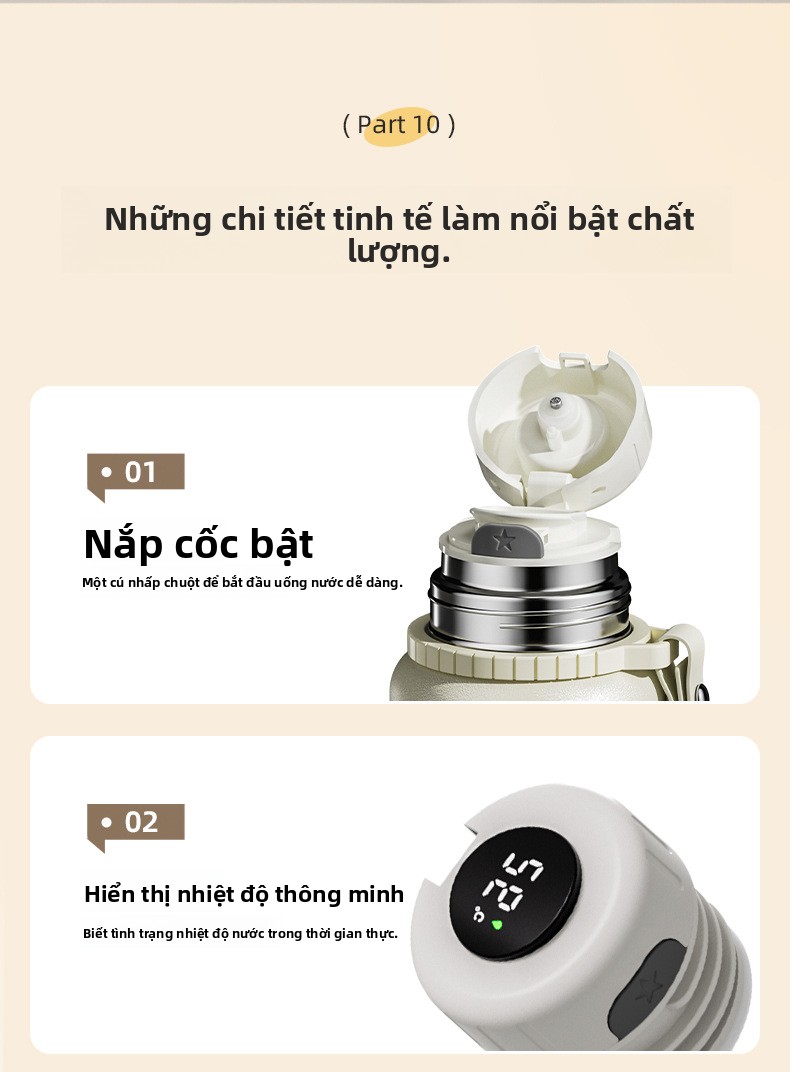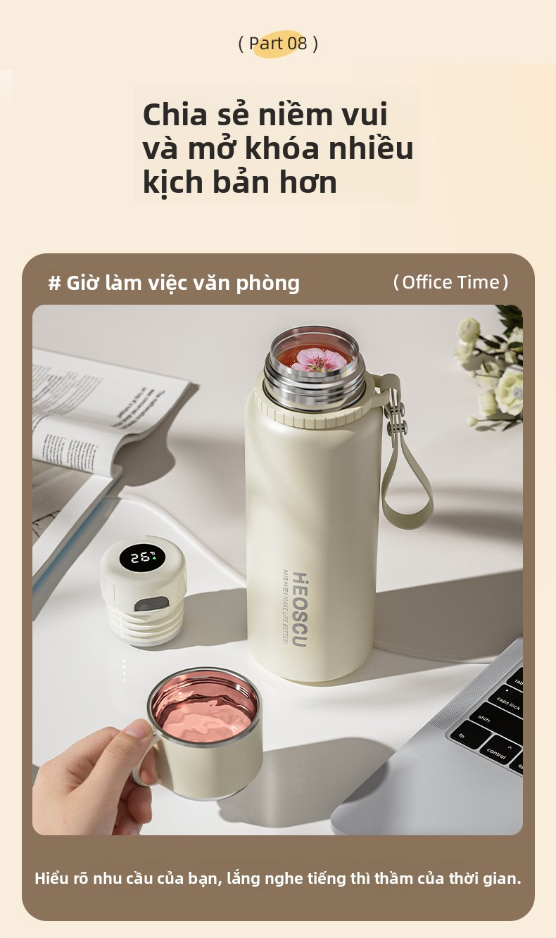 Cốc giữ nhiệt thông minh hiển thị nhiệt độ cốc giữ nhiệt dành riêng cho sinh viên tách nước trà pha trà c