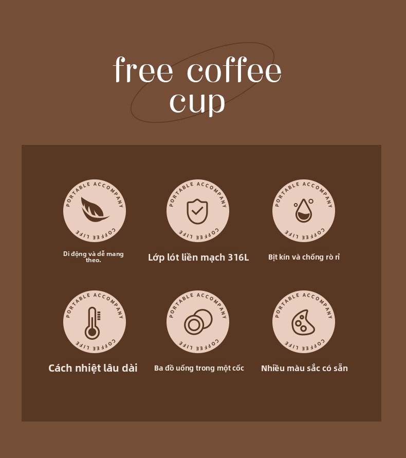 cốc nước bằng thép không gỉ 316 ống hút cốc giữ nhiệt cà phê ba cốc uống giữ nhiệt cốc cà phê giá tr