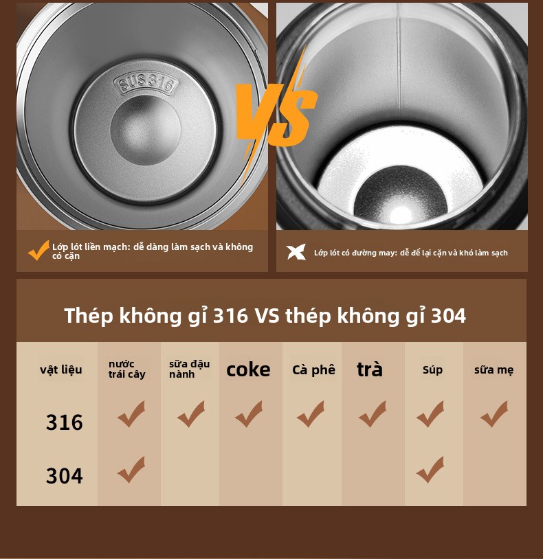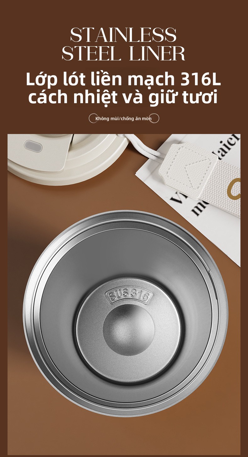 Cốc giữ nhiệt 316 cốc giữ nhiệt bằng thép không gỉ đi làm sinh viên xách tay cỡ lớn với thì