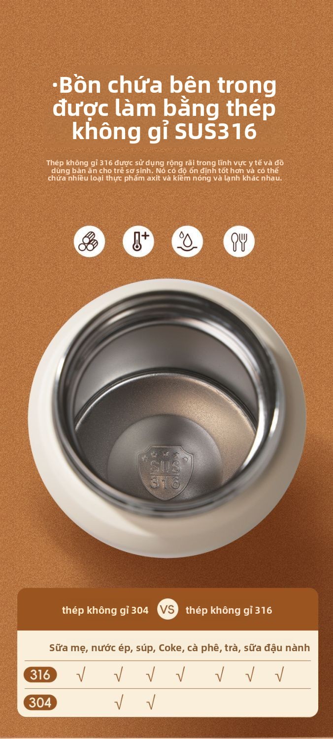 Cốc giữ nhiệt 316 cốc giữ nhiệt bằng thép không gỉ đi làm sinh viên xách tay cỡ lớn với thì