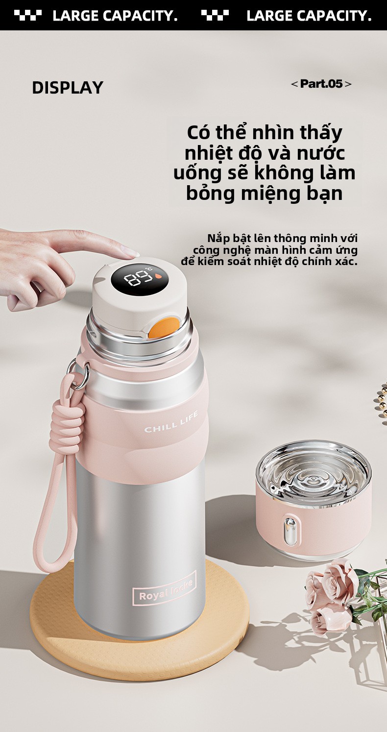 Cốc giữ nhiệt thông minh hiển thị nhiệt độ cốc giữ nhiệt dành riêng cho sinh viên tách nước trà pha trà c