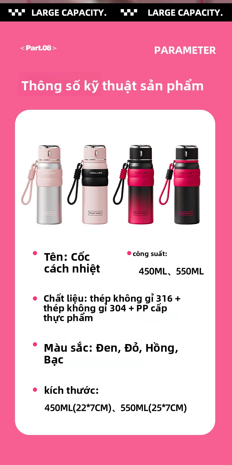 Cốc giữ nhiệt 316 cốc giữ nhiệt bằng thép không gỉ đi làm sinh viên xách tay cỡ lớn với thì