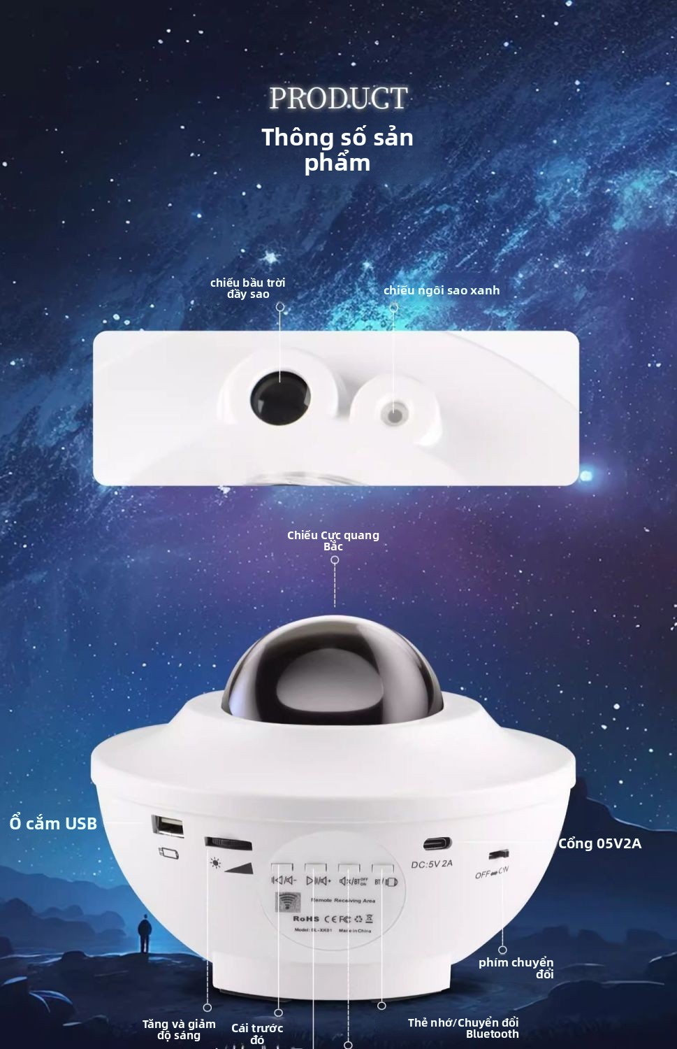 Đèn trang trí Lưới đỏ cực quang Bluetooth sao chiếu đèn phòng ngủ phòng ngủ lãng mạn đầy sao ánh sáng sinh nhật qu