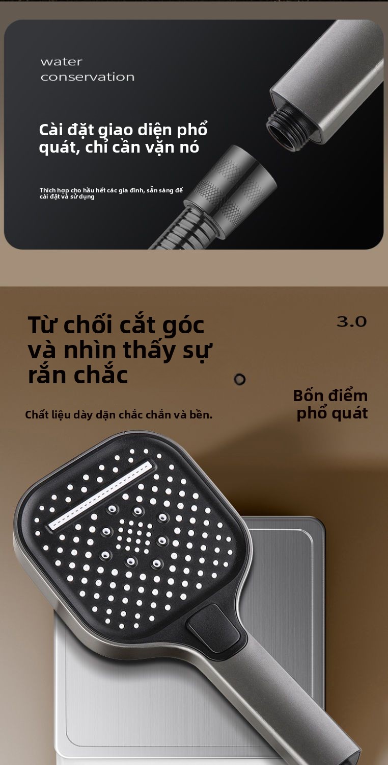 Đầu phun hoa tăng áp ba ngăn, bảng điều khiển lớn, phòng tắm, đầu tắm, đầu vòi hoa sen, đầu vòi sen,
