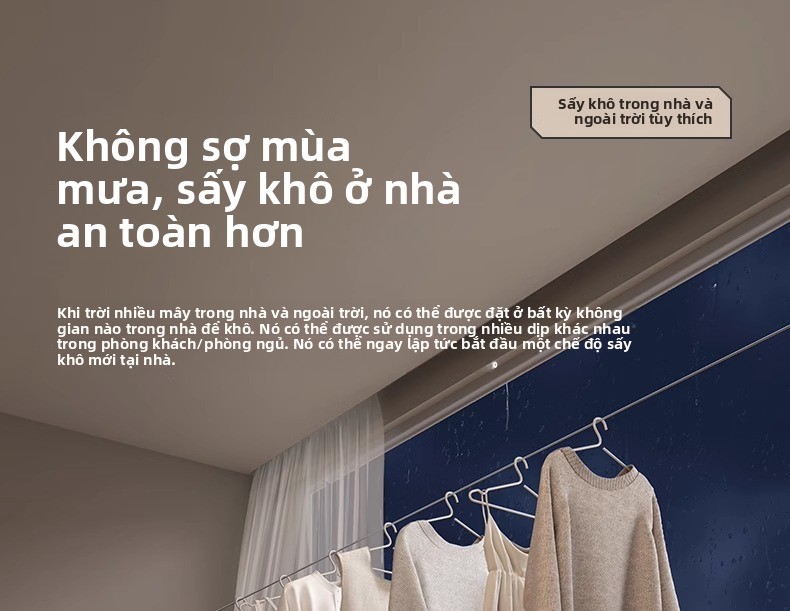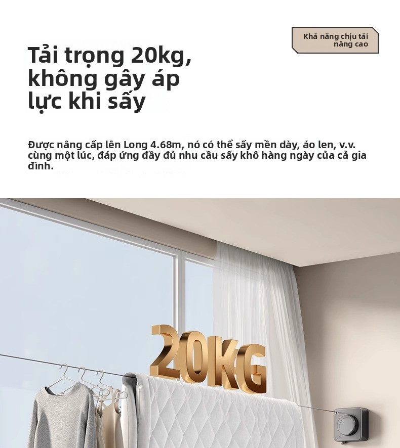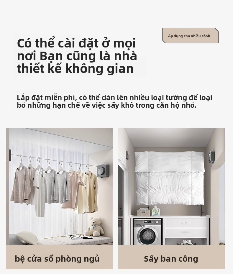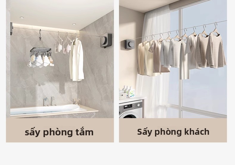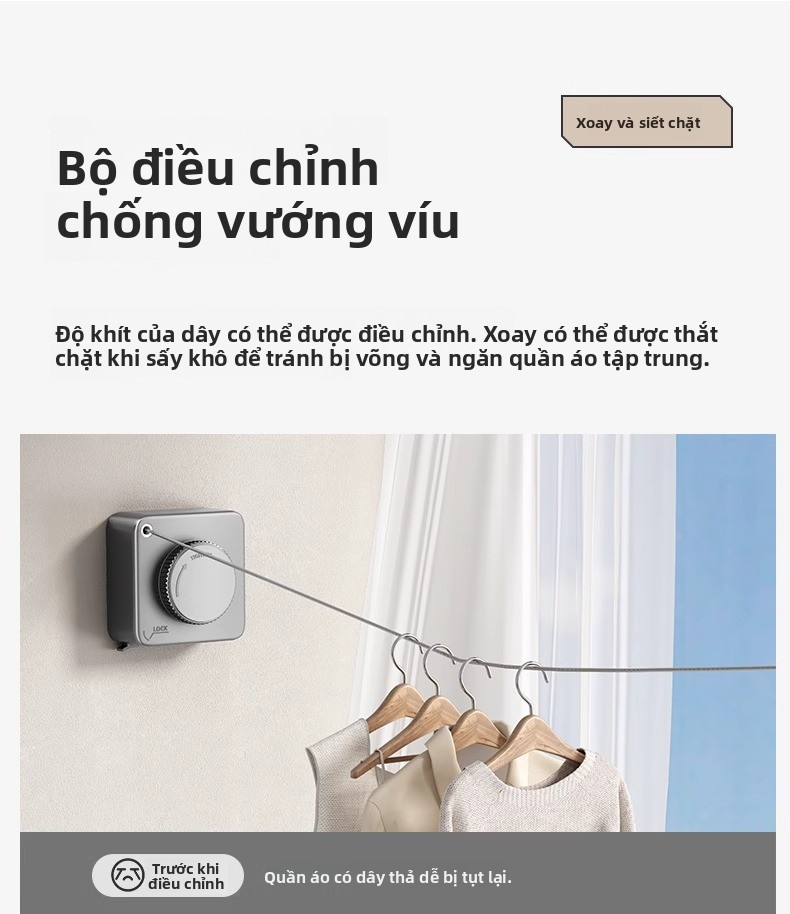 Dây phơi quần áo trong nhà miễn phí đục lỗ có thể thu vào dây phơi quần áo vô hình treo tường ban cô