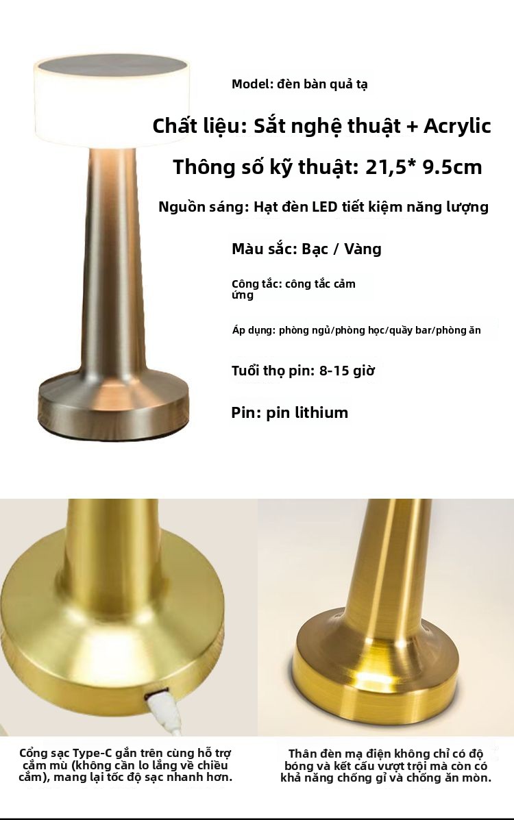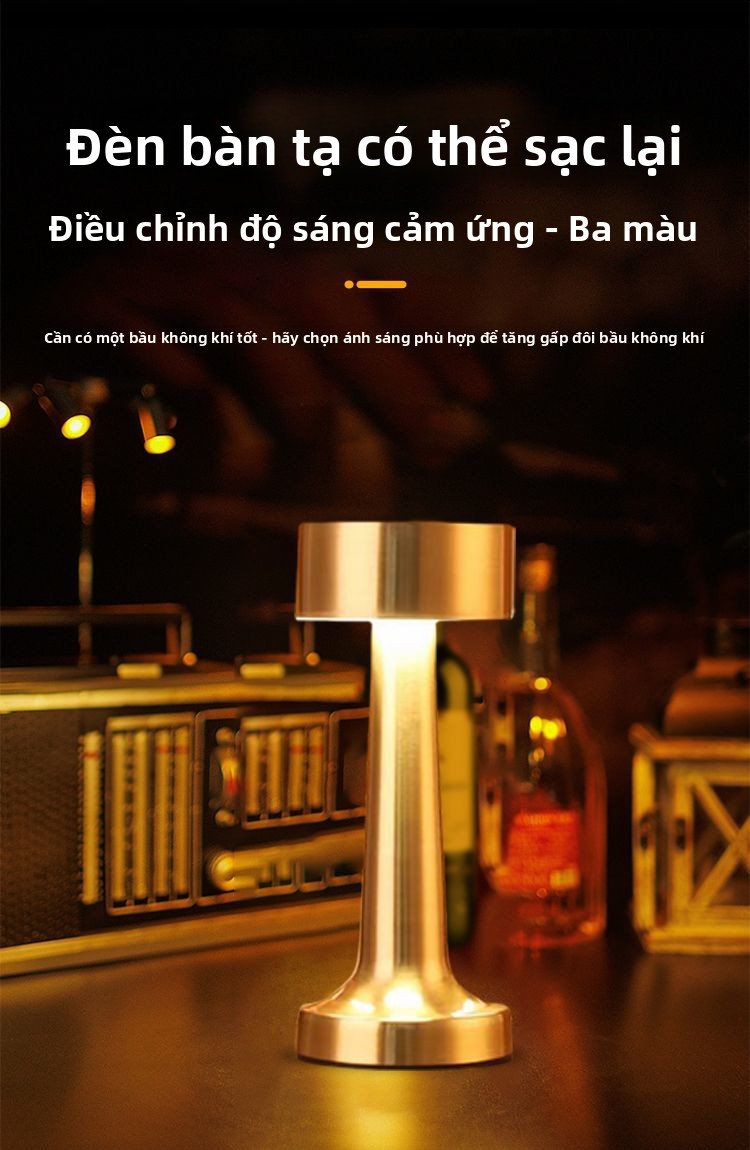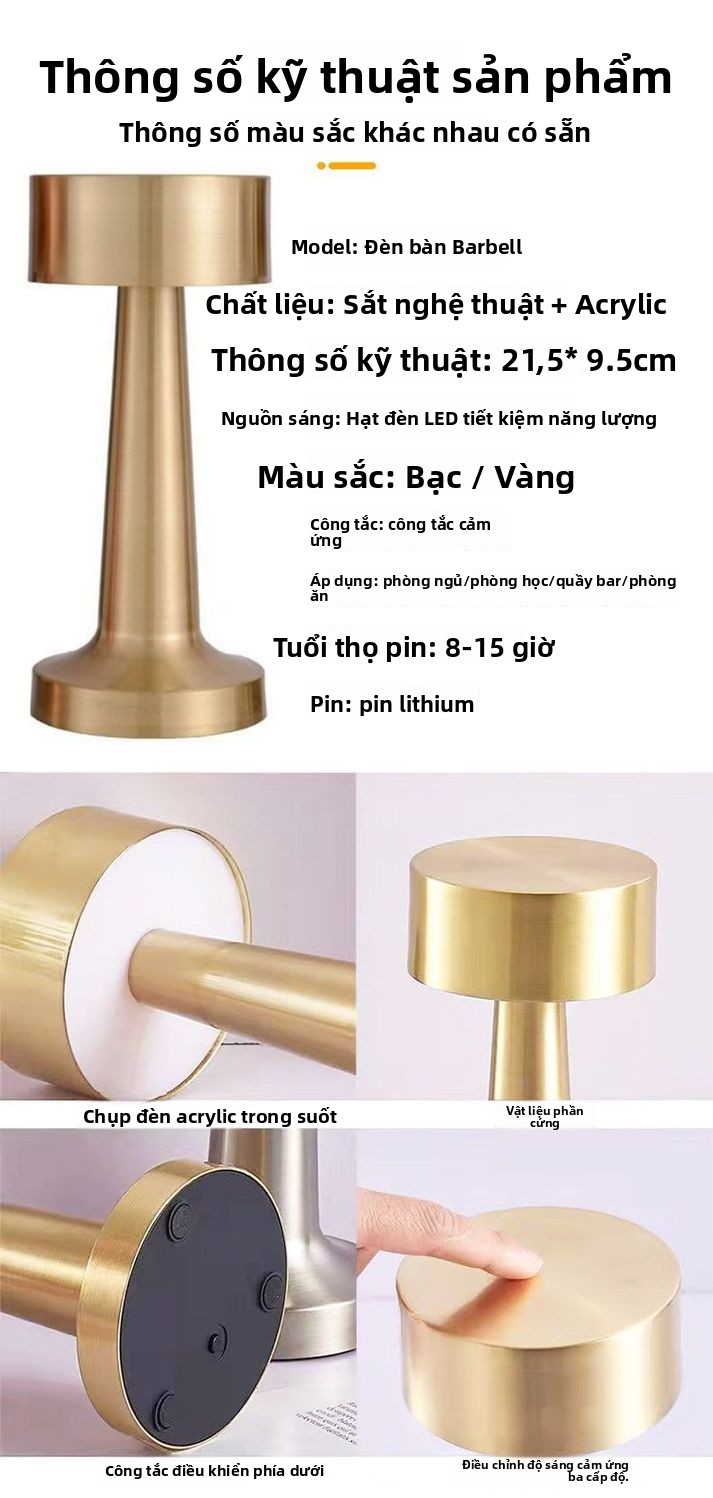 Đèn bàn thanh Đèn bàn kim loại có thể sạc lại ins gió chạm vào bàn trà đầu giường đèn không khí đèn