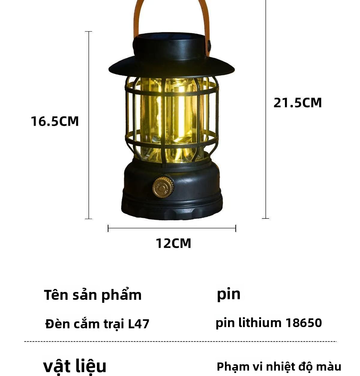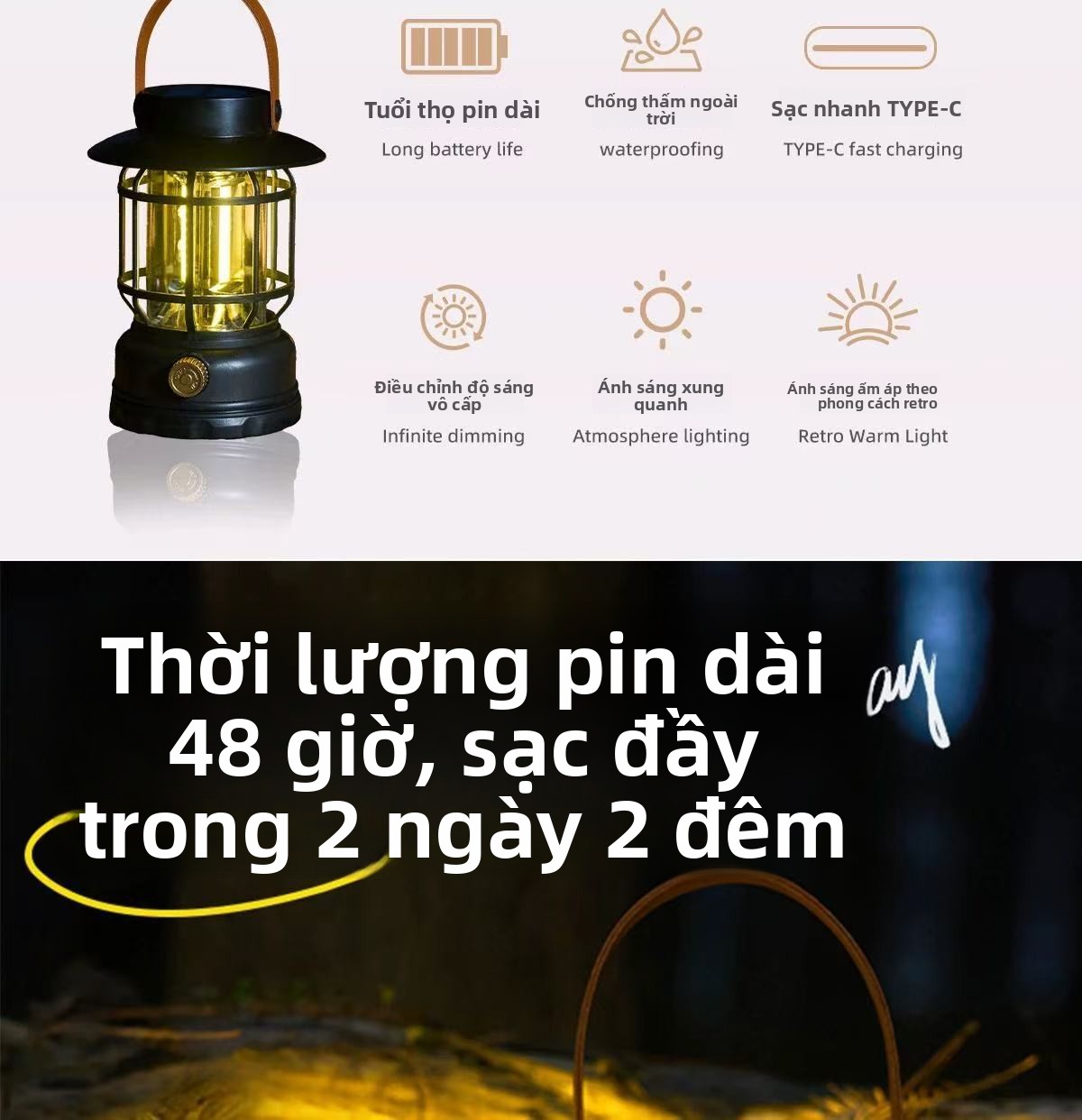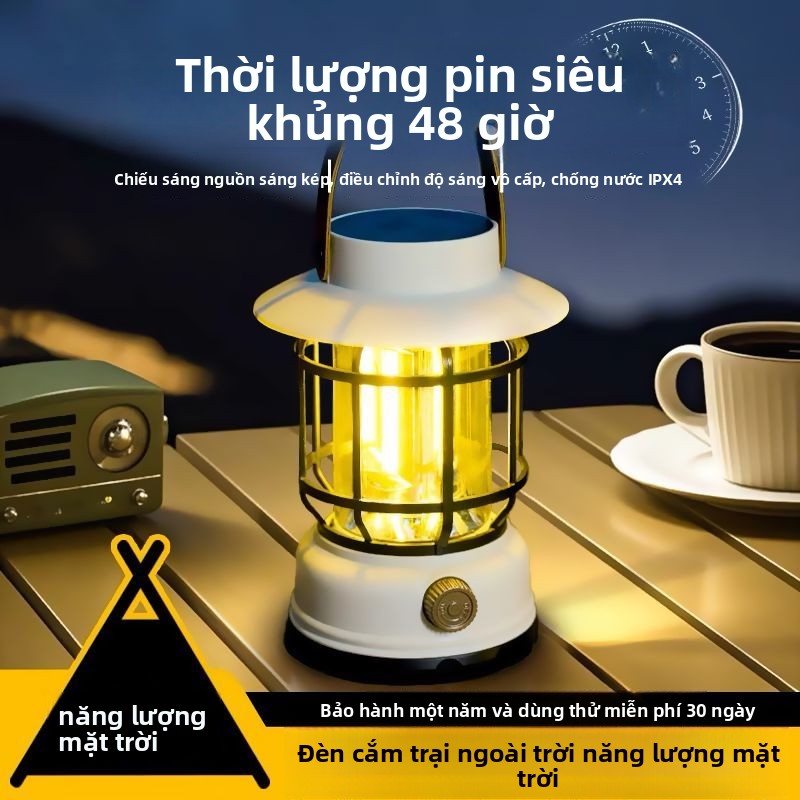 Đèn cắm trại ngoài trời năng lượng mặt trời Đèn ngựa có thể sạc lại Retro siêu dài cắm trại lều khí