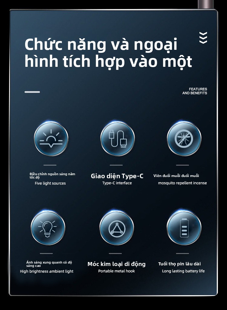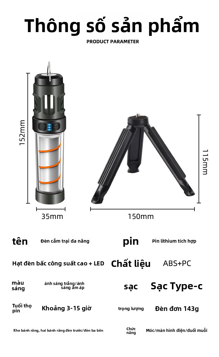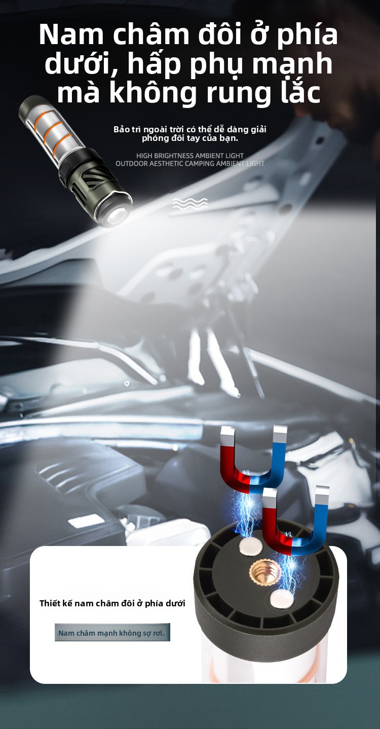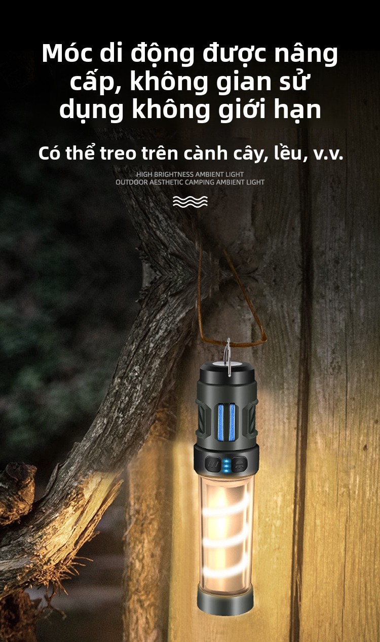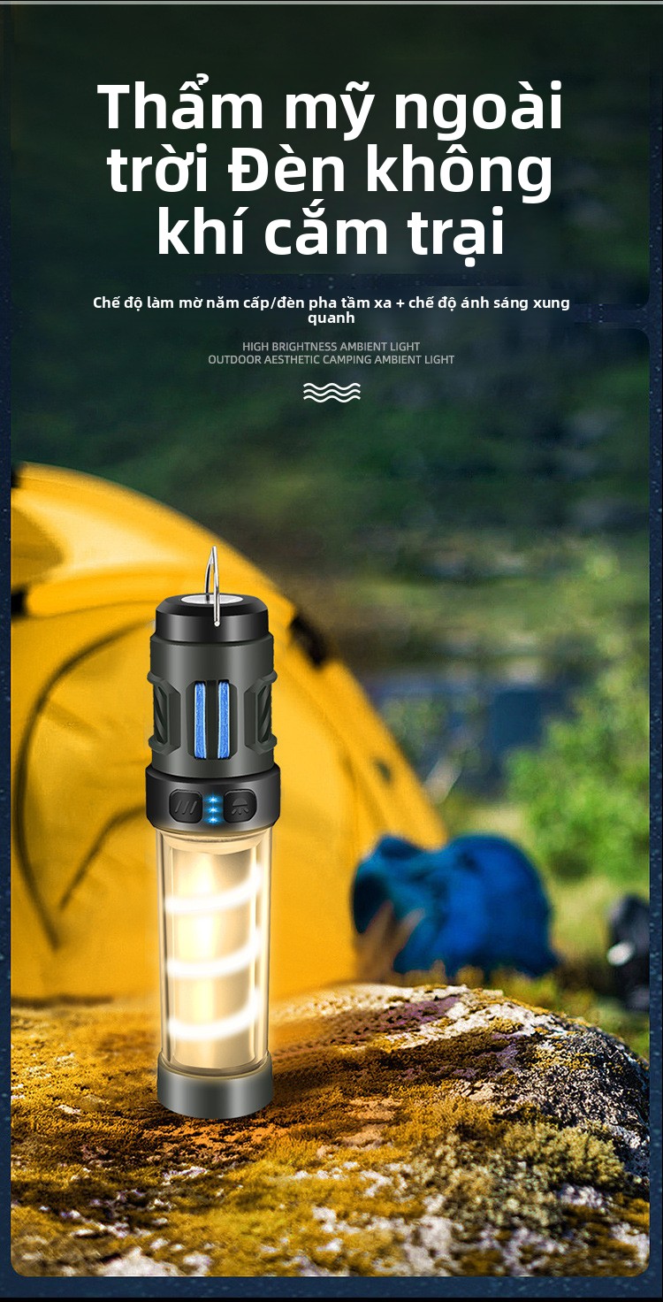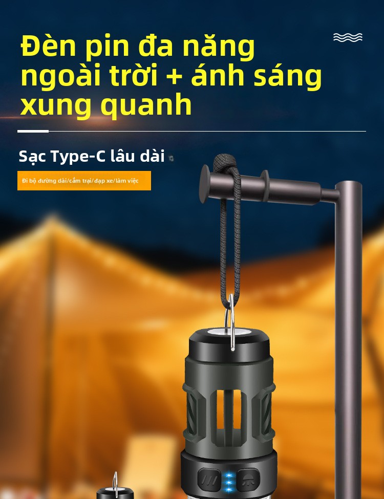 Đèn cắm trại chống muỗi ngoài trời đa chức năng Type-C sạc dài độ bền từ tính hút đèn khí quyển tam