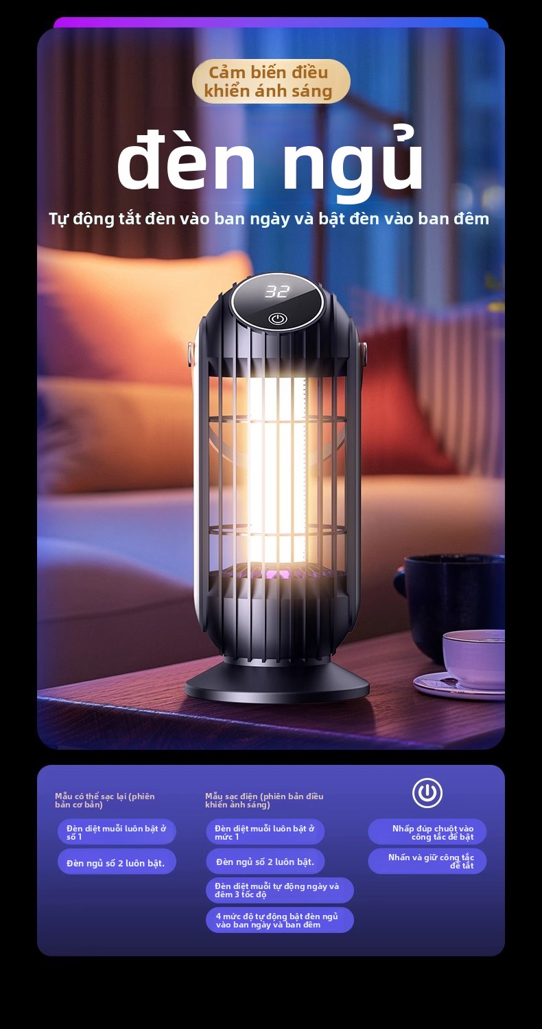 Đèn diệt muỗi điều khiển ánh sáng đồ tạo tác gia dụng 2025 đèn chống muỗi mới trong nhà chống côn tr