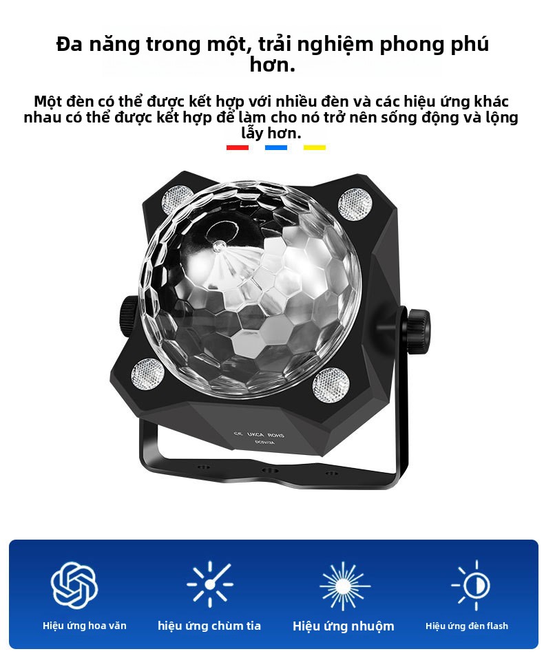 Đèn LED ánh sáng tím đèn sân khấu nhấp nháy điều khiển bằng giọng nói bảy màu LED sân