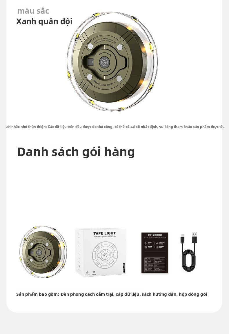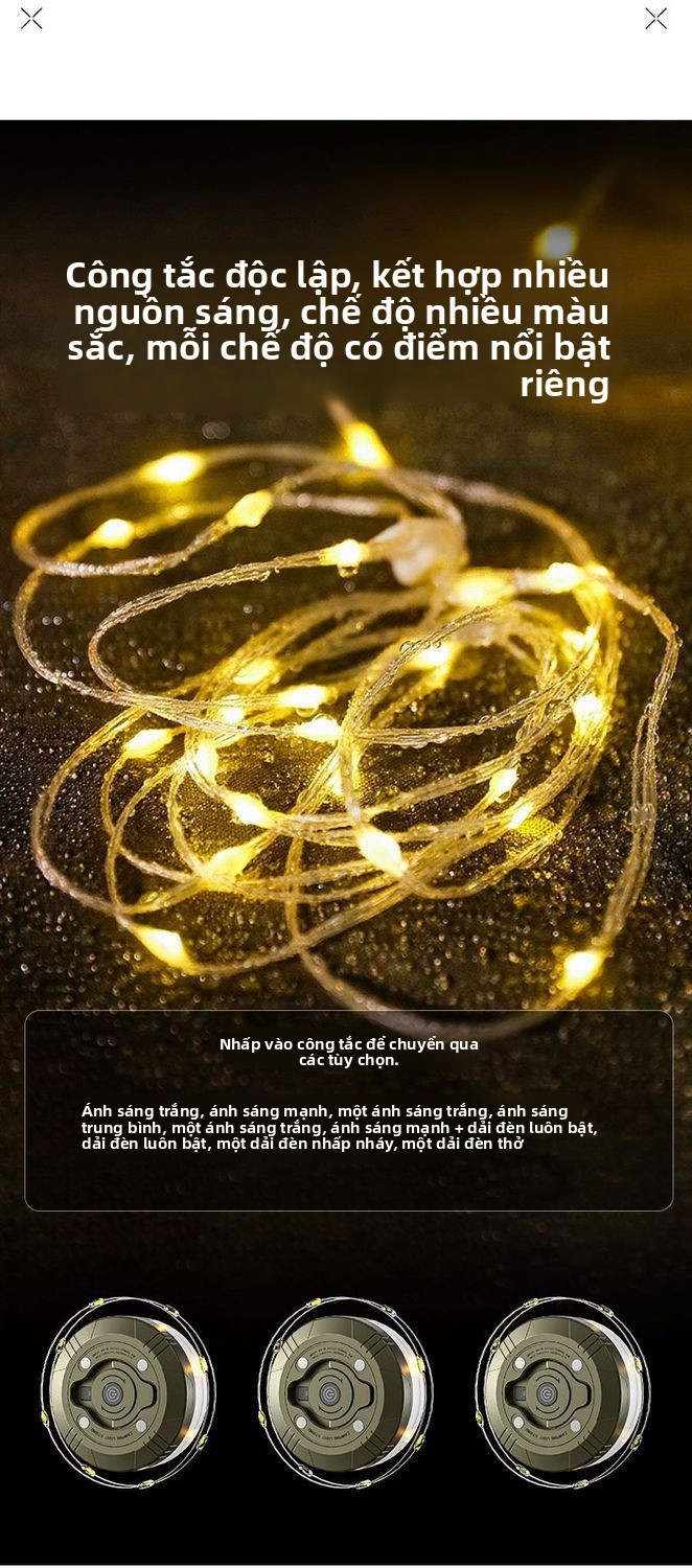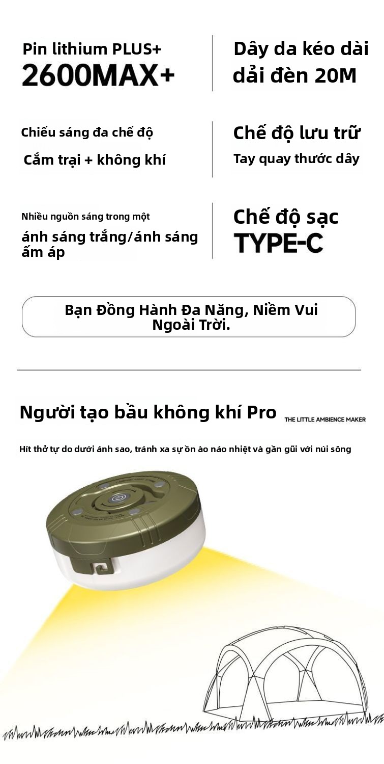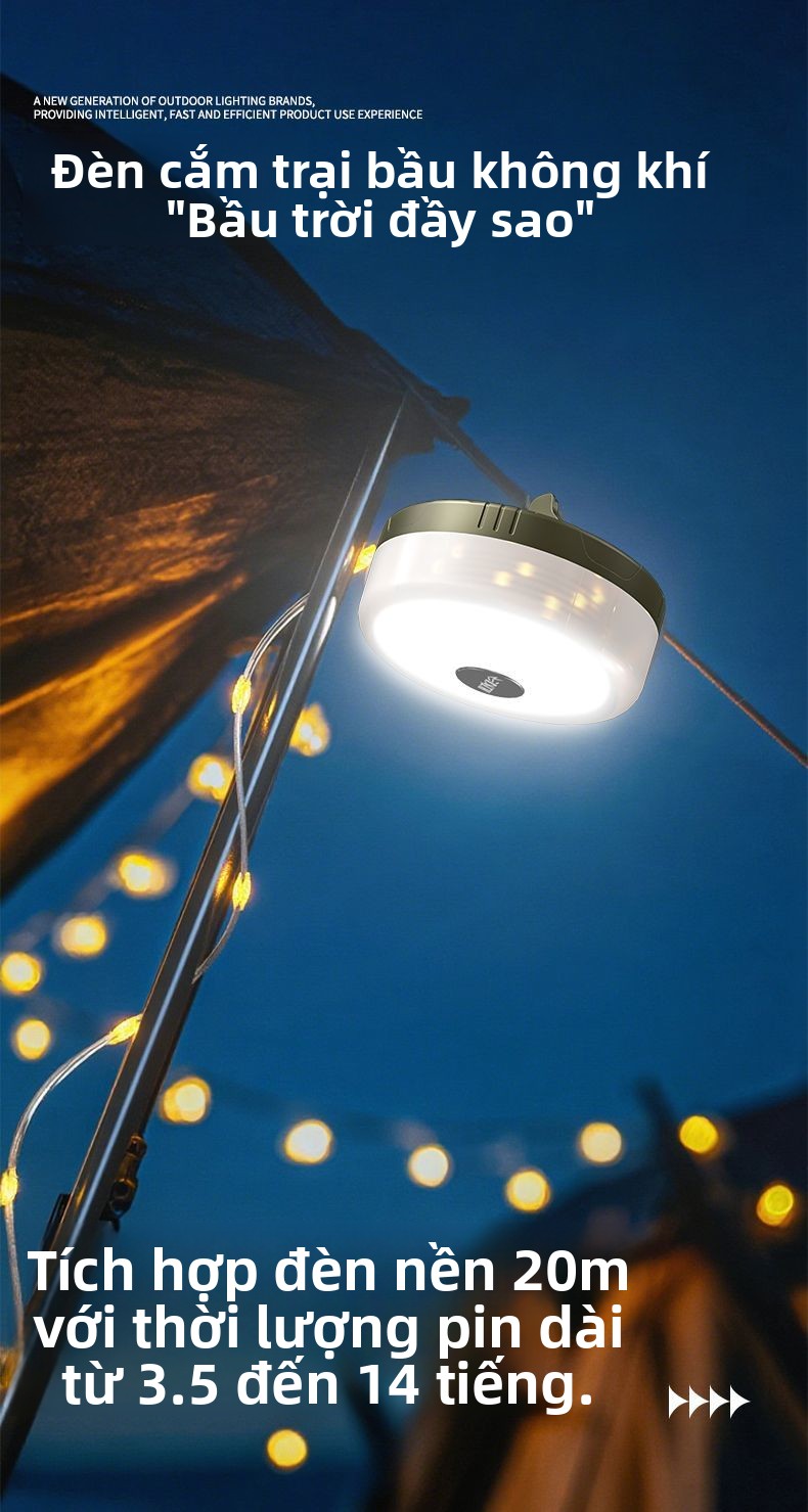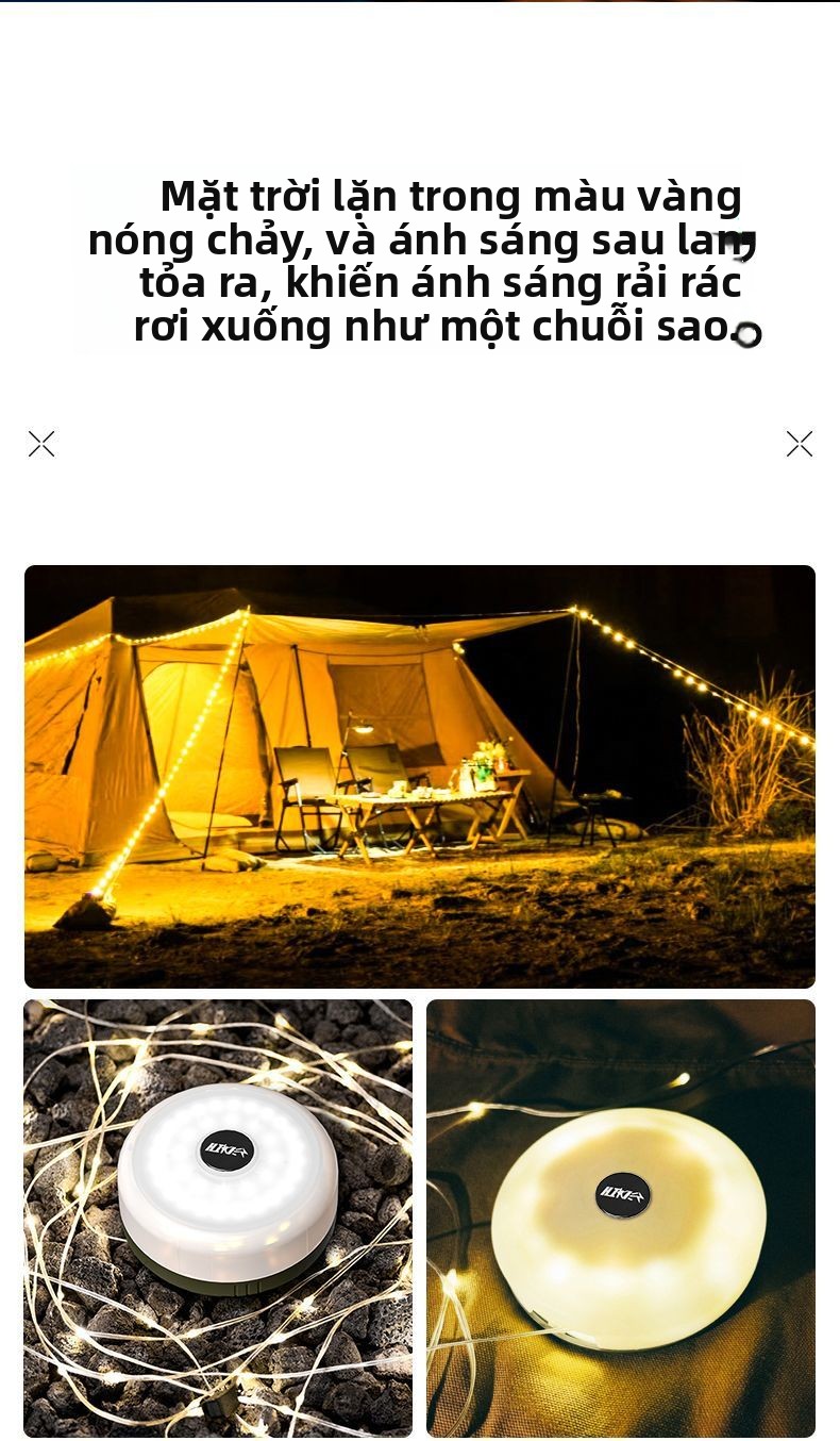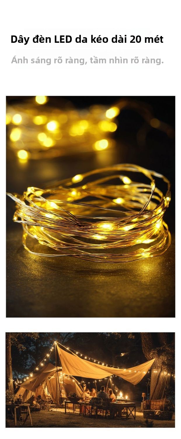 Đèn cắm trại ngoài trời sạc siêu dài độ bền di động treo lều trại màn trời đèn led