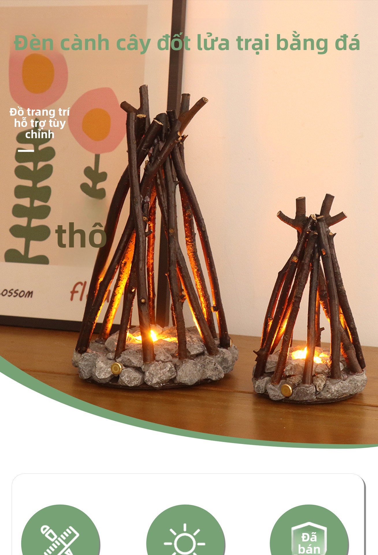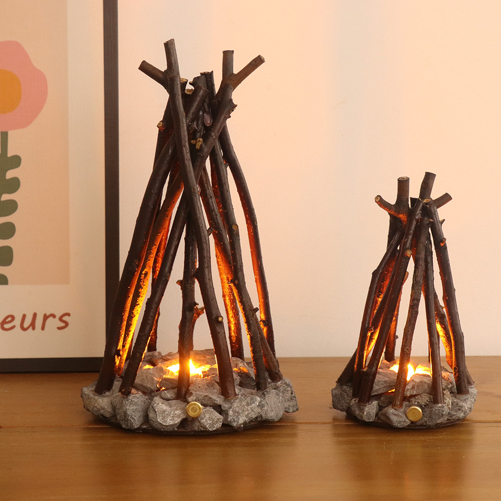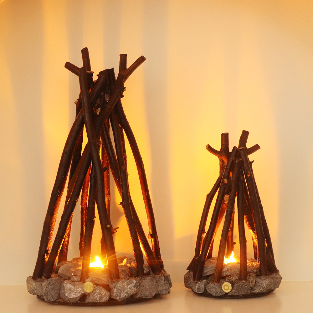 Đèn ngủ sáng tạo đơn giản trang trí cổ điển thủ công cành cây hình dạng LED đốt lửa trại homestay st