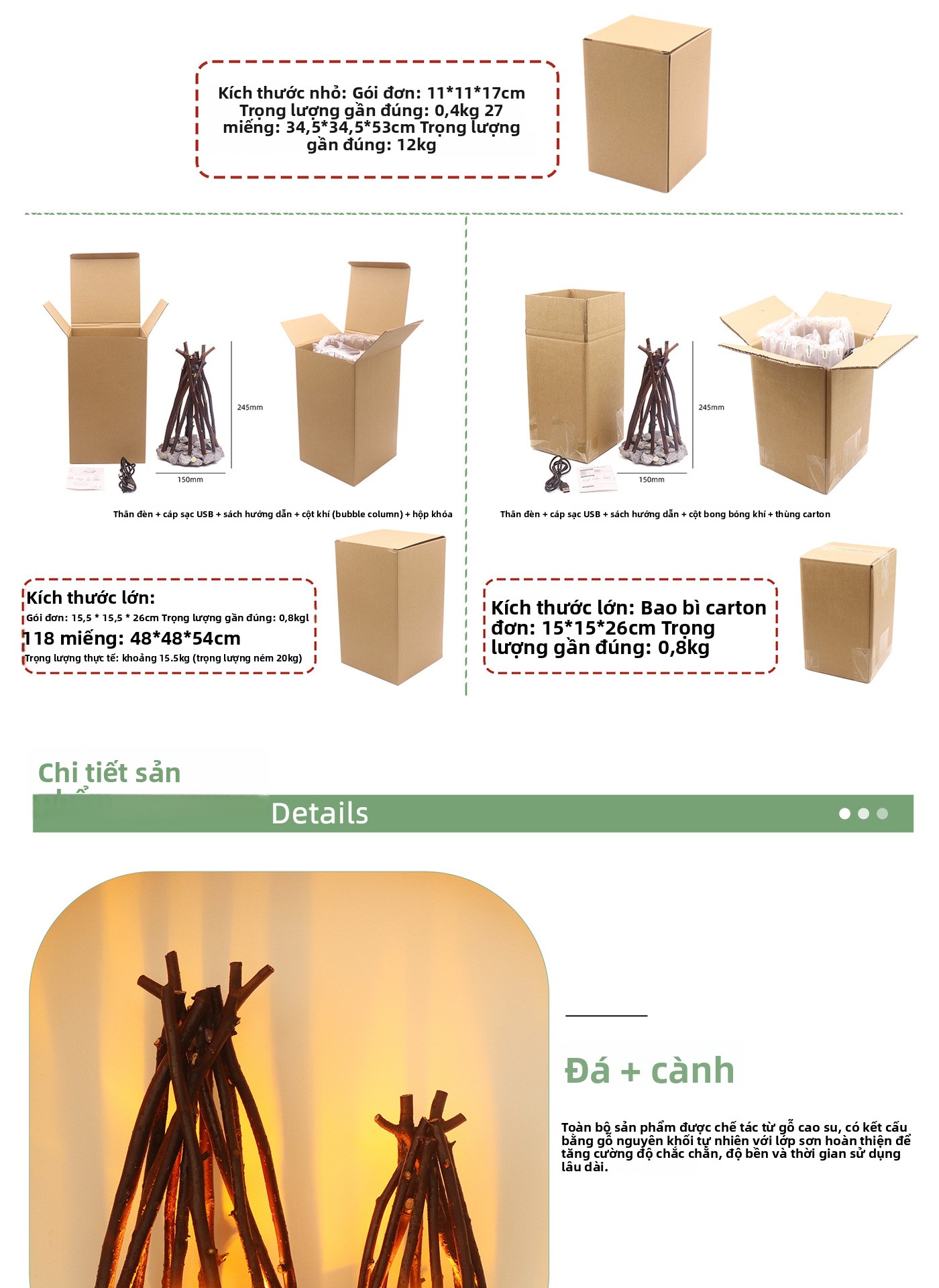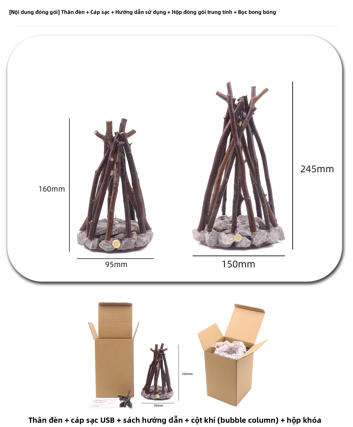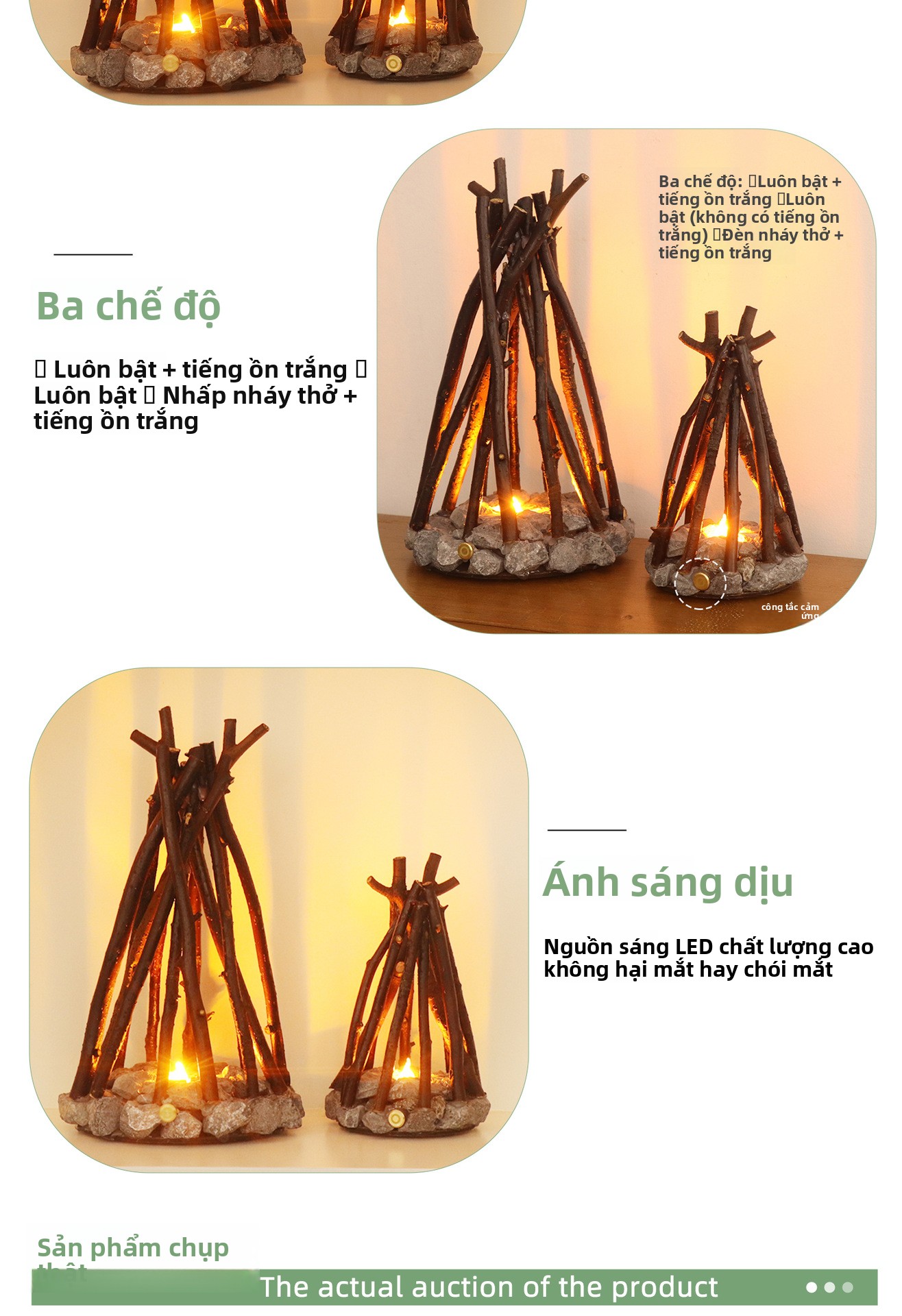 Đèn ngủ sáng tạo đơn giản trang trí cổ điển thủ công cành cây hình dạng LED đốt lửa trại homestay st