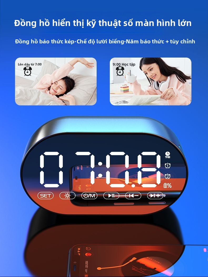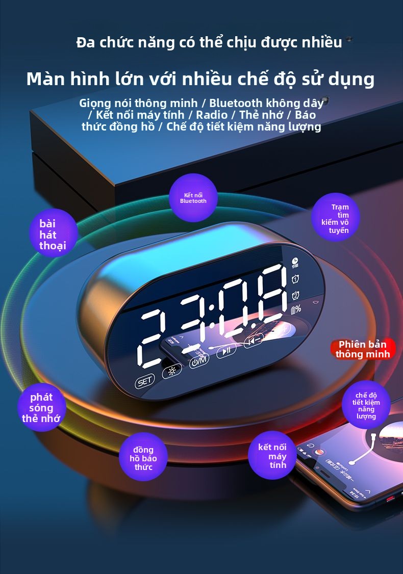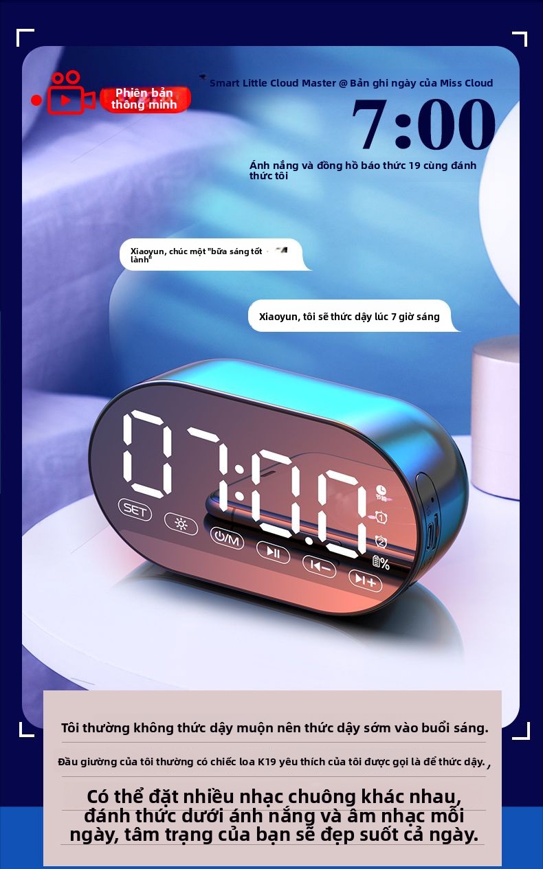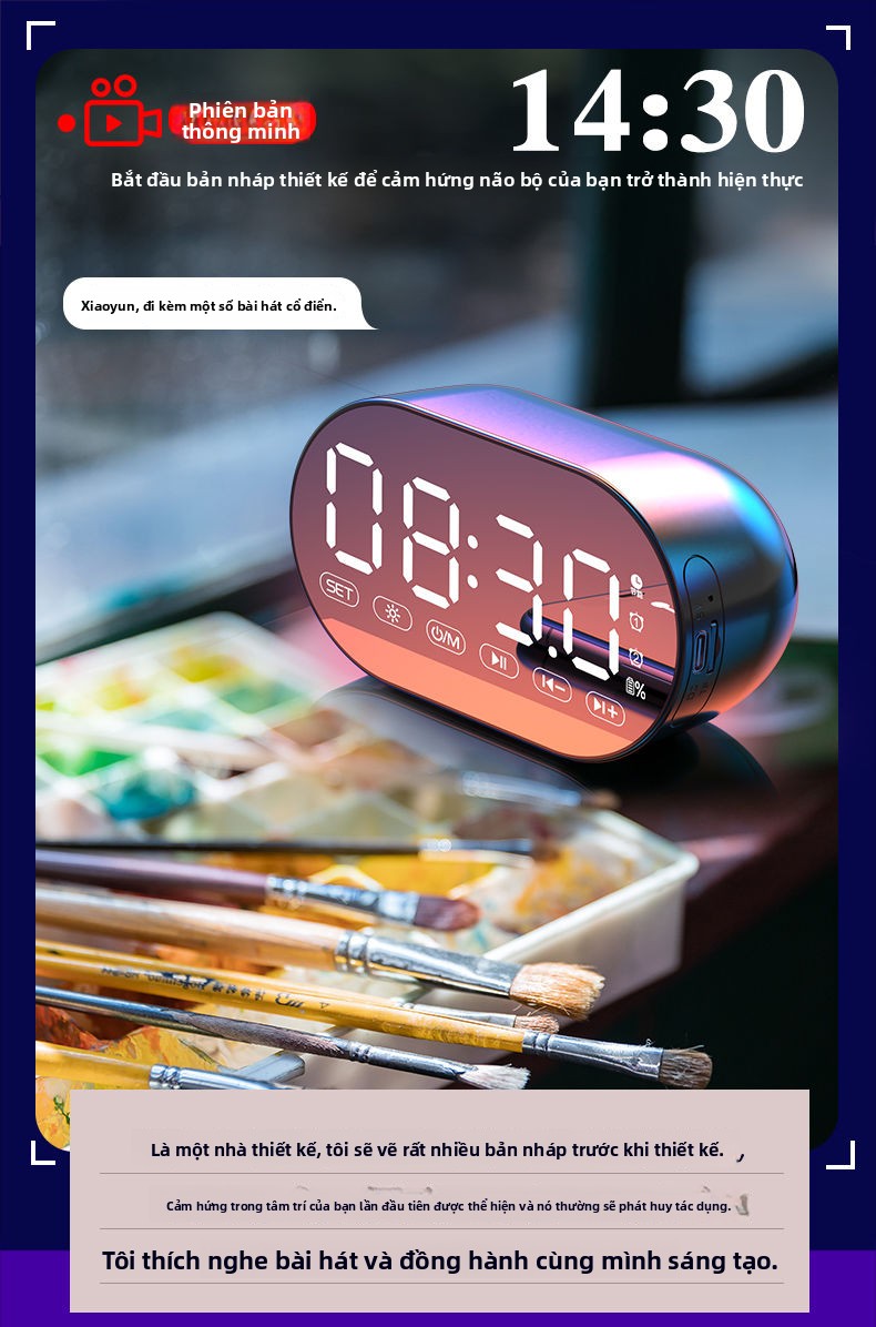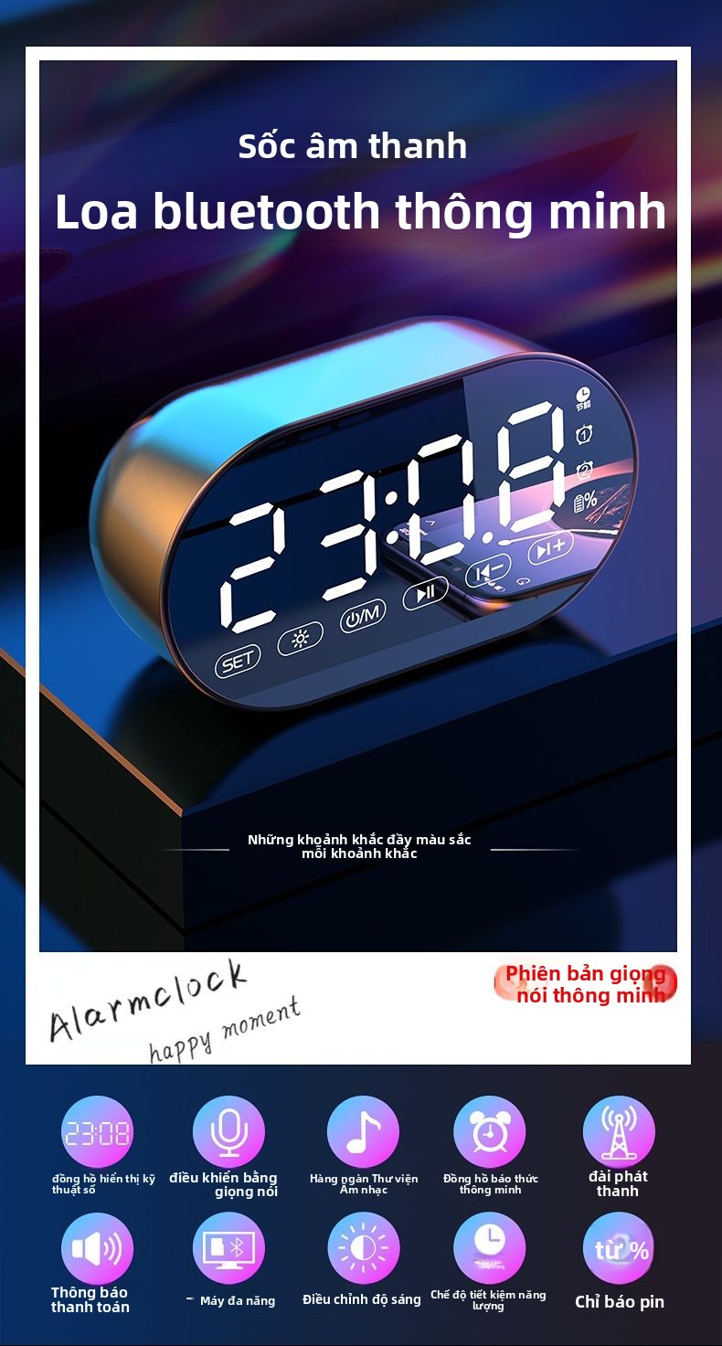 Đồng hồ báo thức AI loa Bluetooth sinh viên có thể sạc lại ký túc xá loa siêu trầm đa chức năng nhận