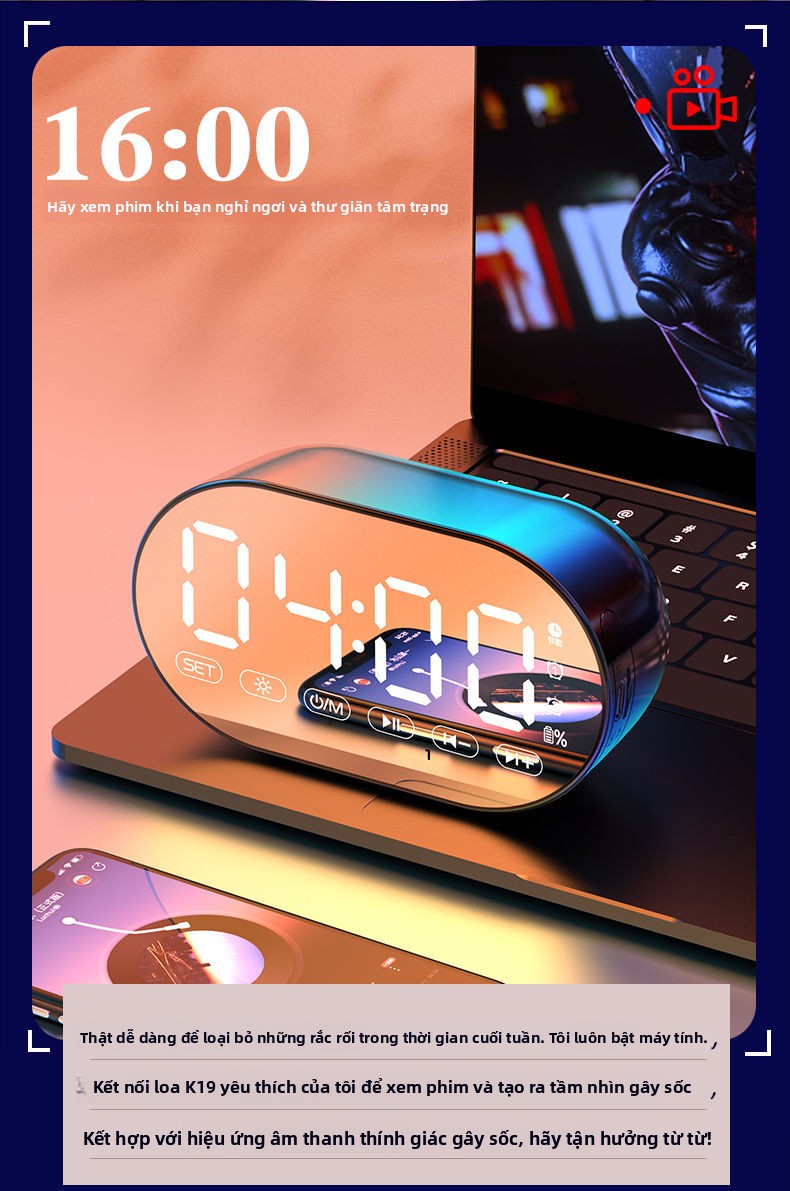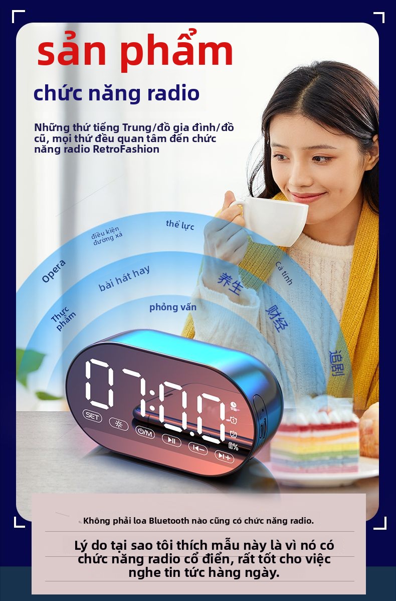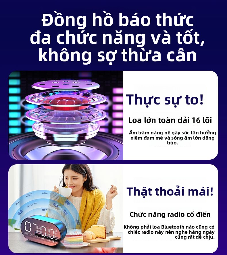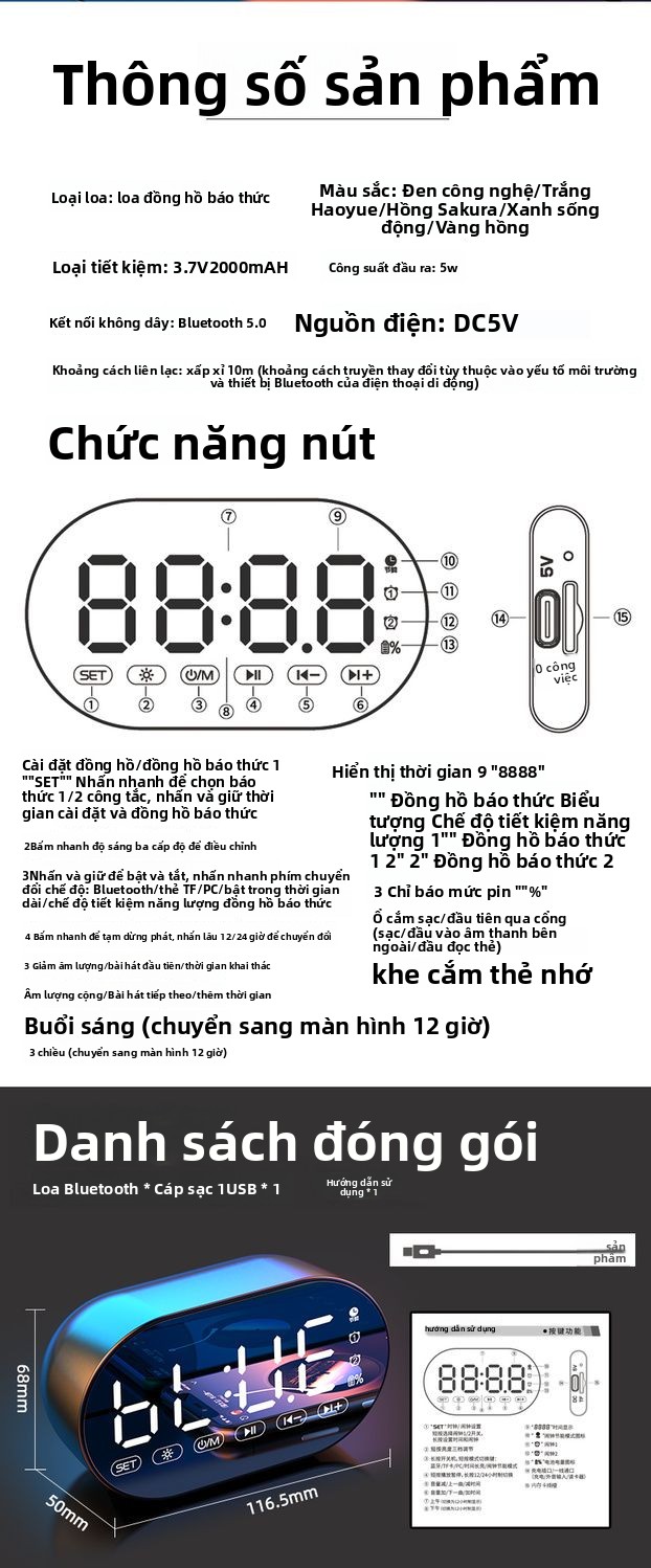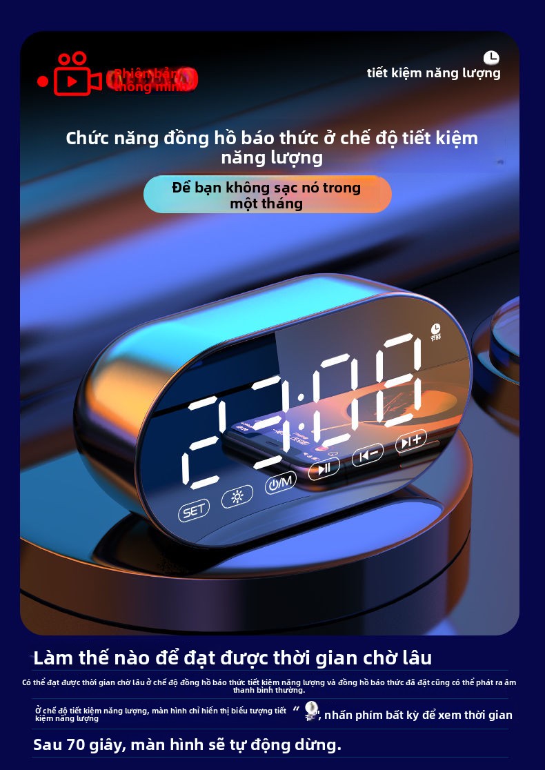 Đồng hồ báo thức AI loa Bluetooth sinh viên có thể sạc lại ký túc xá loa siêu trầm đa chức năng nhận