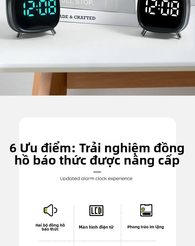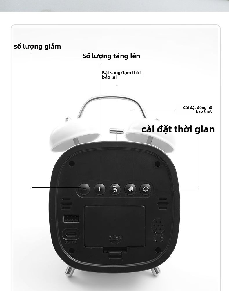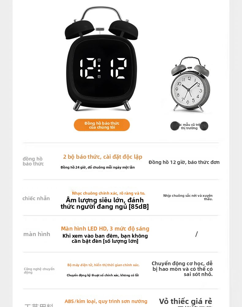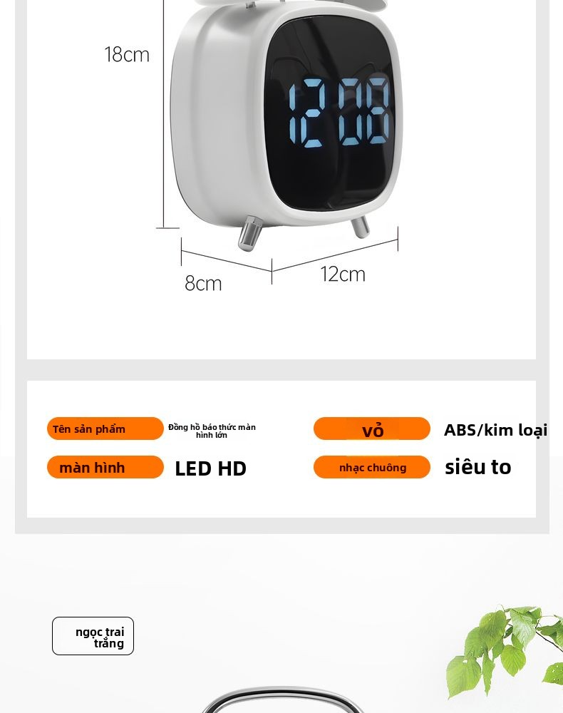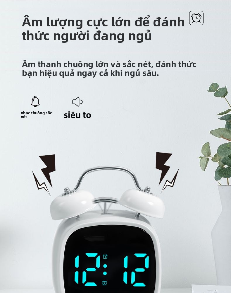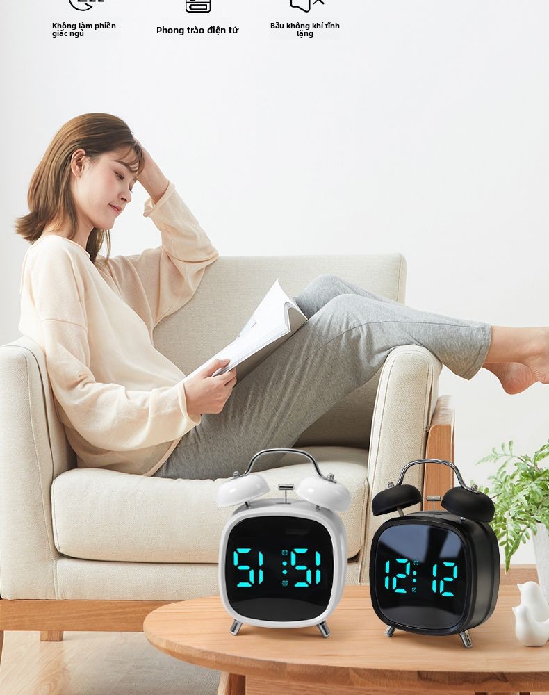 Đồng hồ chuông kim loại TIMESS Học sinh thức dậy màn hình LED âm lượng cực lớn HD hai bộ đồng hồ báo thức dà