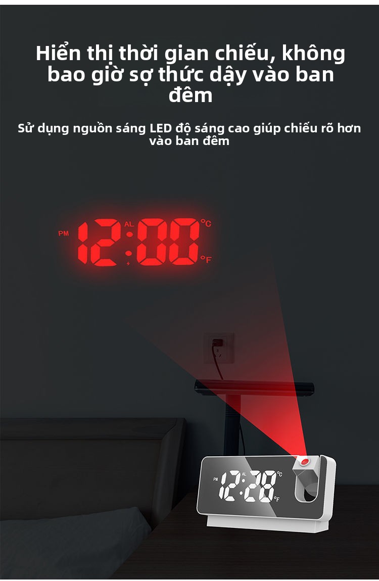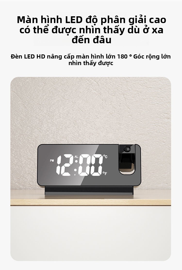 Đồng hồ chiếu kỹ thuật số dạ quang thông minh mới màn hình lớn im lặng chiếu sáng tạo đồng hồ báo th
