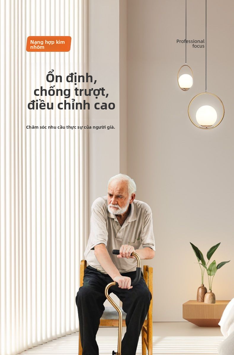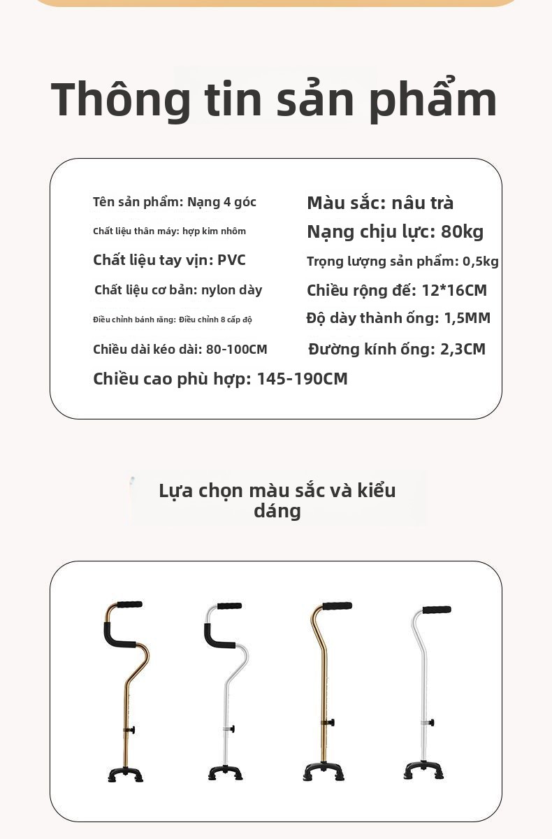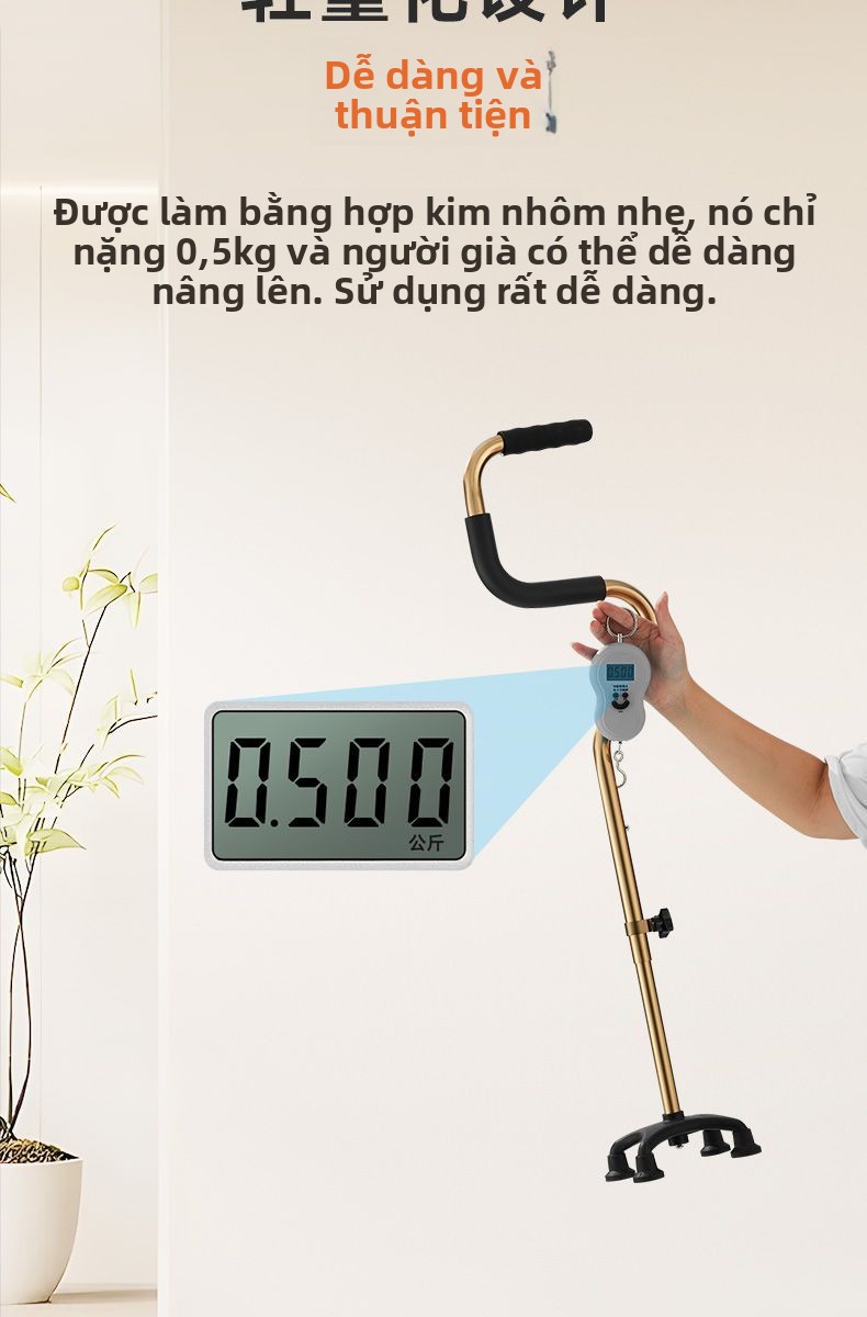 Gậy chống người già bốn chân gậy chống rơi người già hợp kim nhôm nhẹ và đa chức năng chống trượt gậ