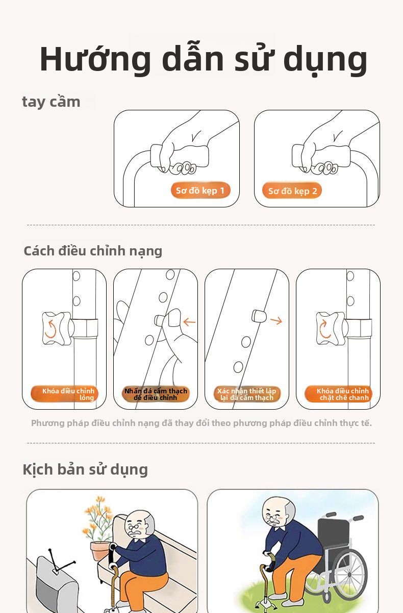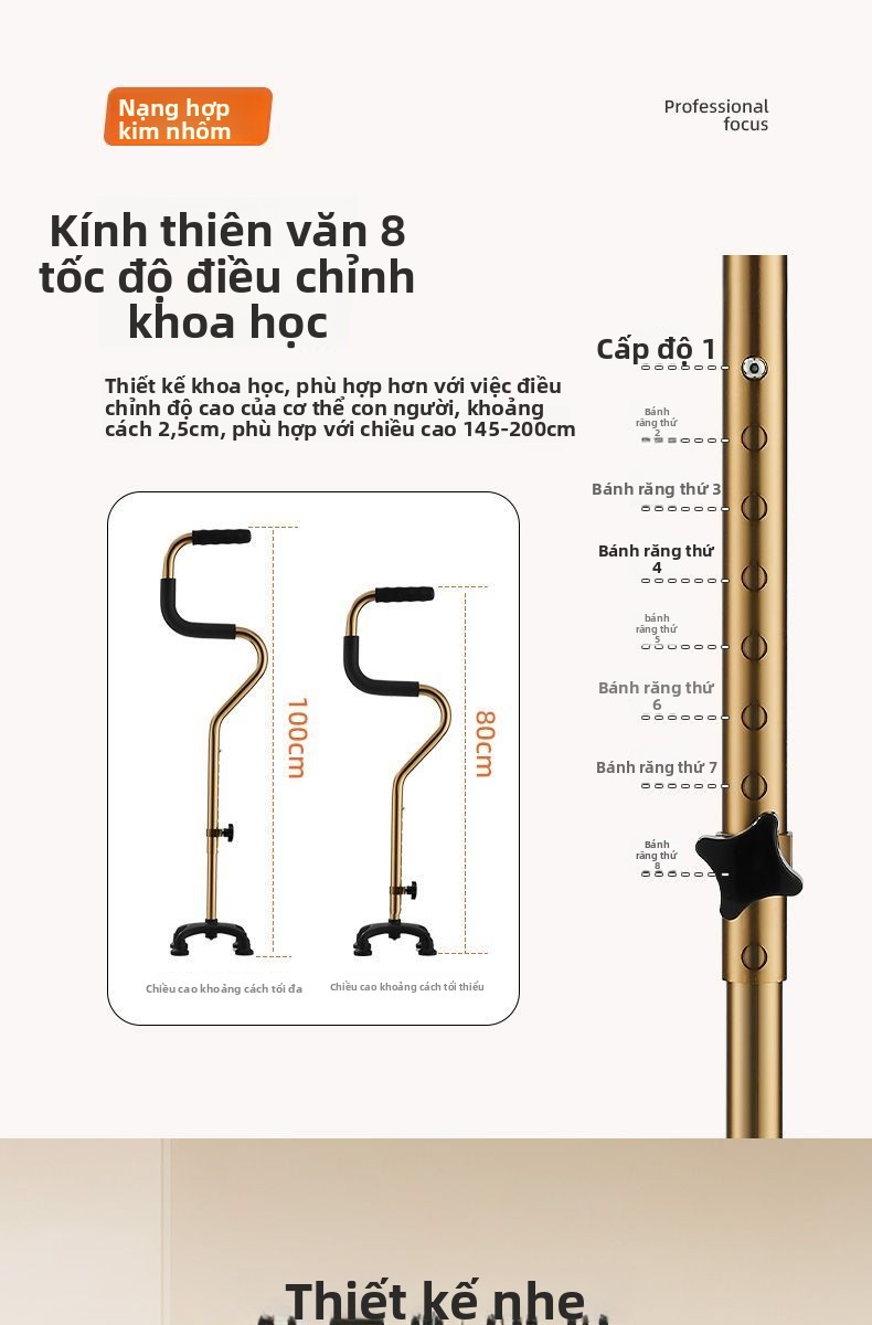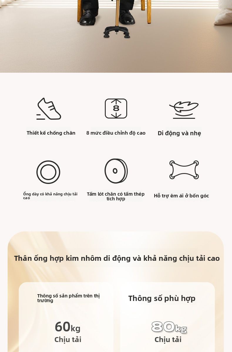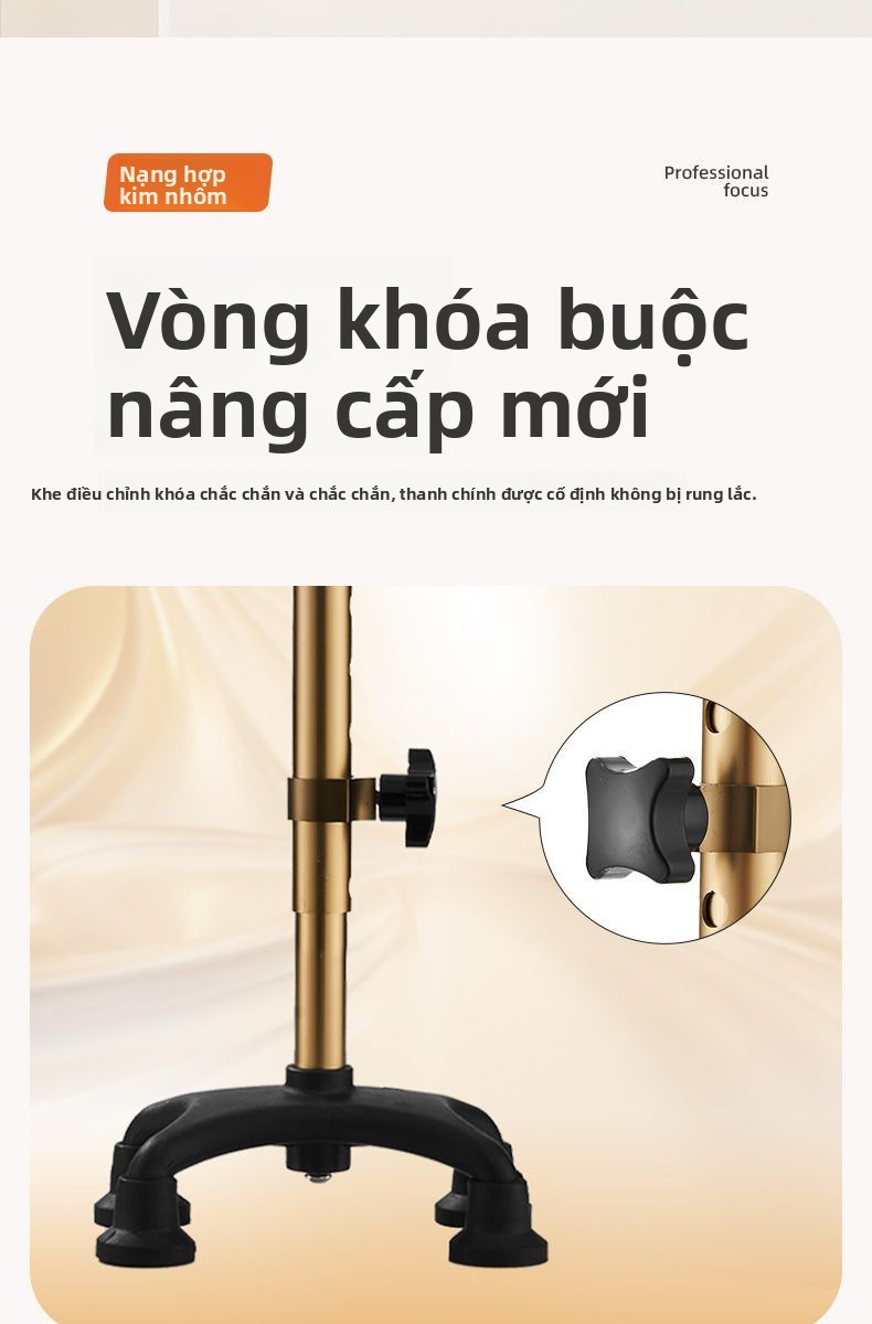 Gậy chống người già bốn chân gậy chống rơi người già hợp kim nhôm nhẹ và đa chức năng chống trượt gậ