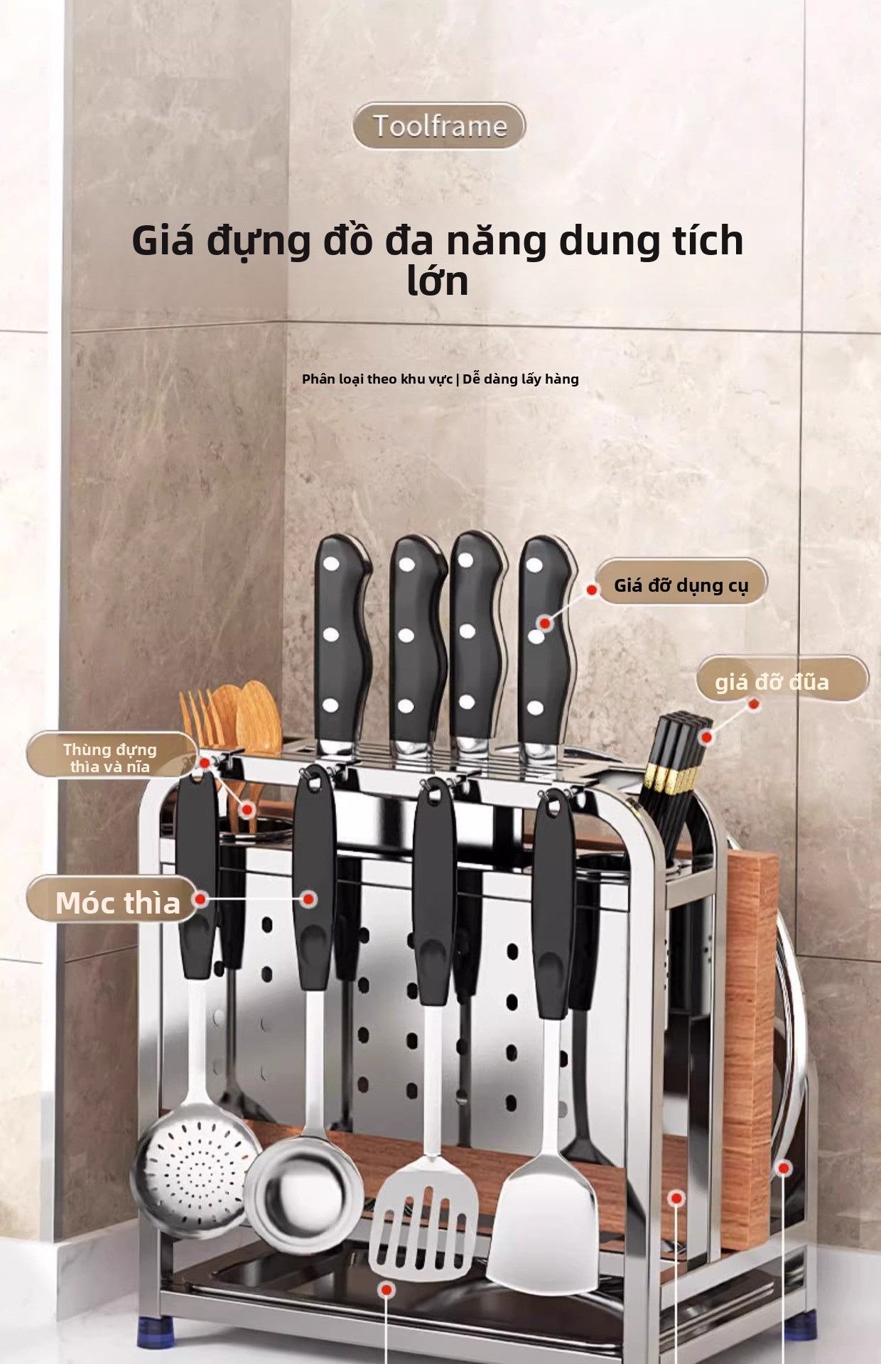 Giá đỡ dao bằng thép không gỉ giá đỡ bếp giá đỡ dao đa chức năng giá đỡ dao làm bếp đũa hộp thớt dao
