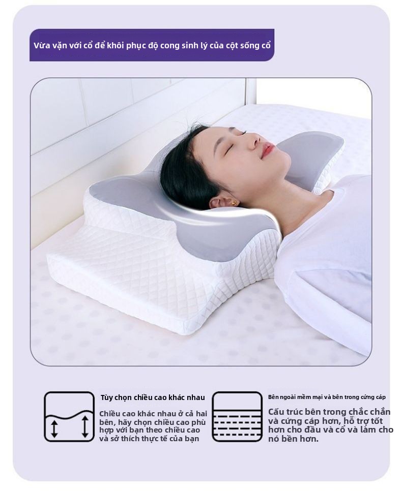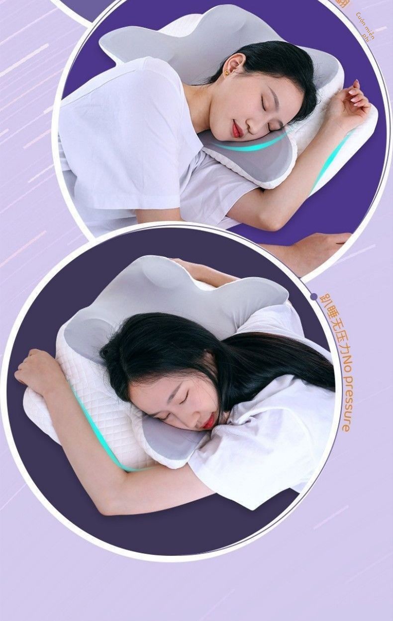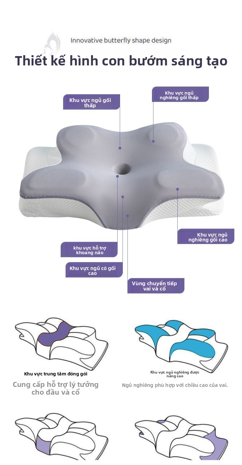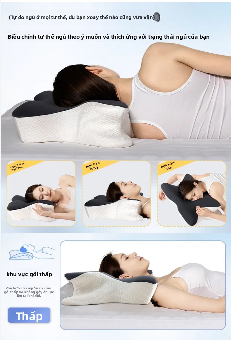 Gối bảo vệ cột sống cổ giúp ngủ chậm phục hồi kéo gối nhớ gối bông gối bướm công thái học đa
