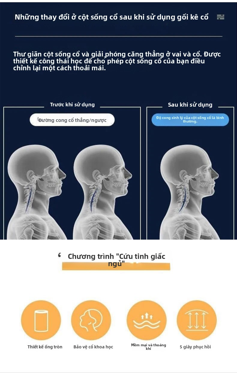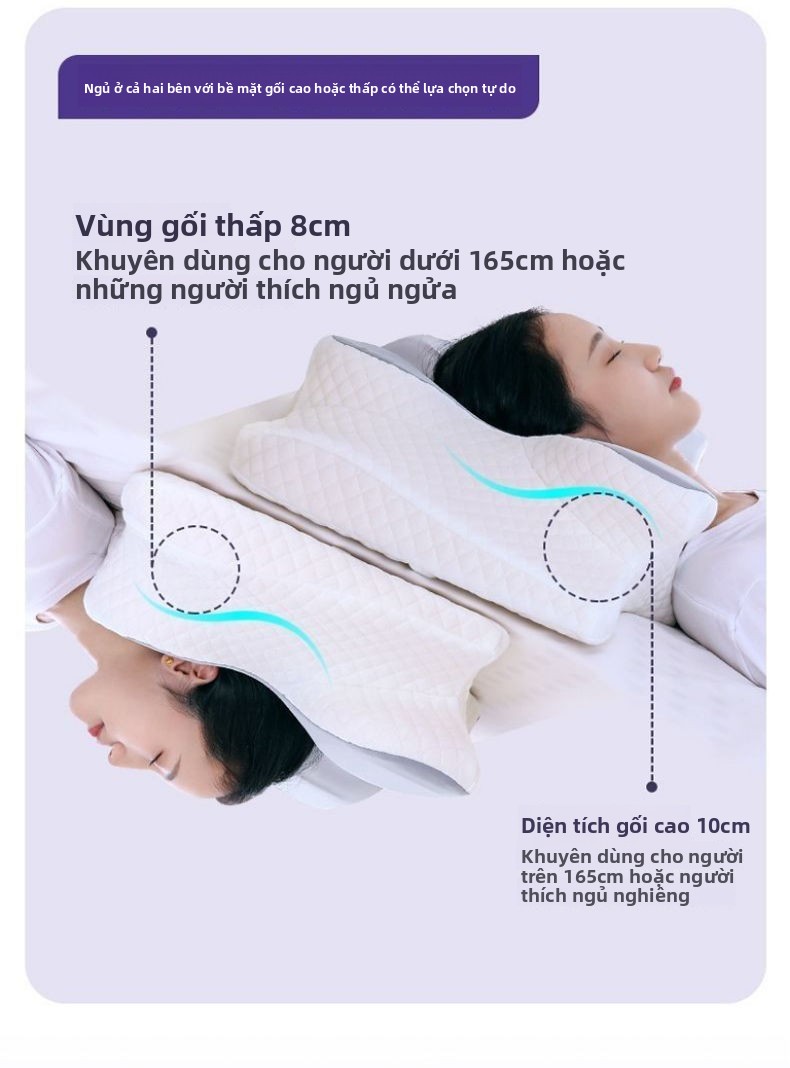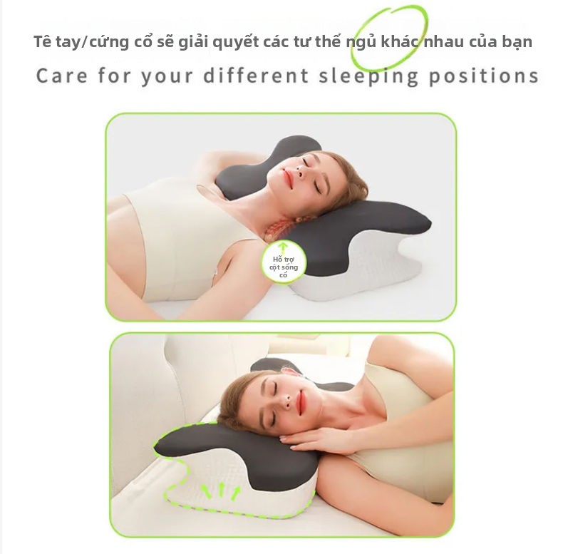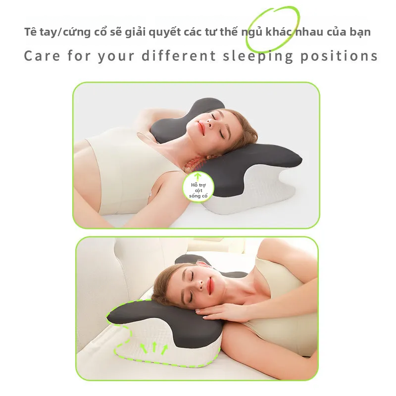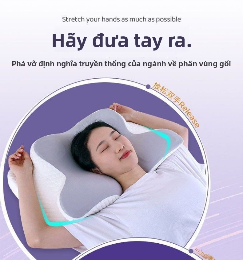 Gối bảo vệ cột sống cổ giúp ngủ chậm phục hồi kéo gối nhớ gối bông gối bướm công thái học đa