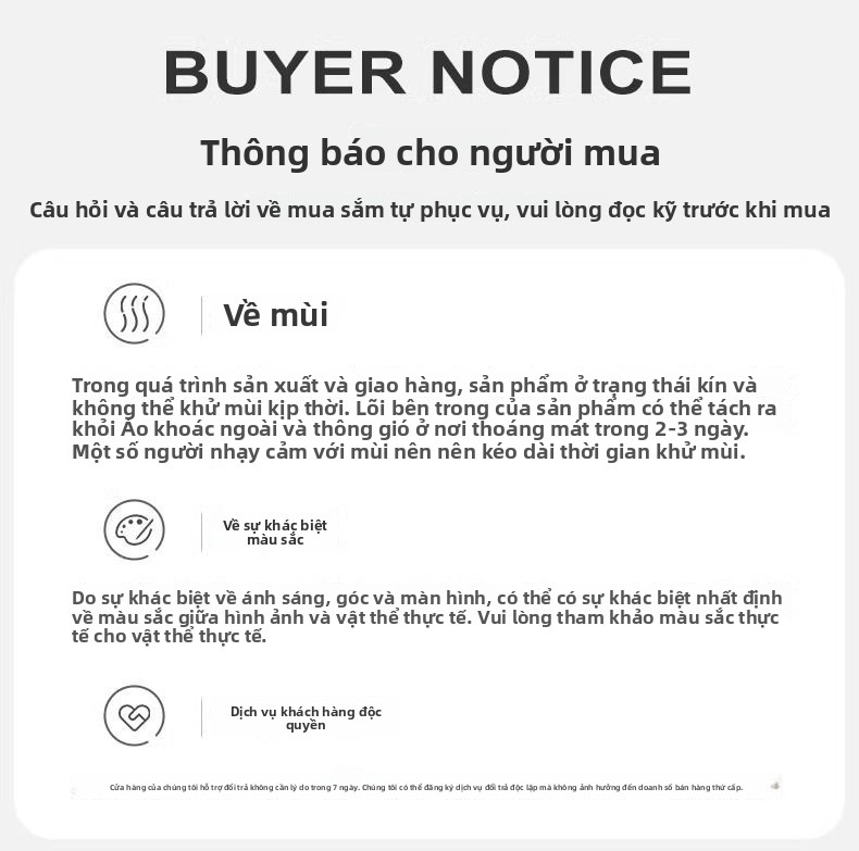 3. Phí vận chuyển trở lại do người mua thanh toán.