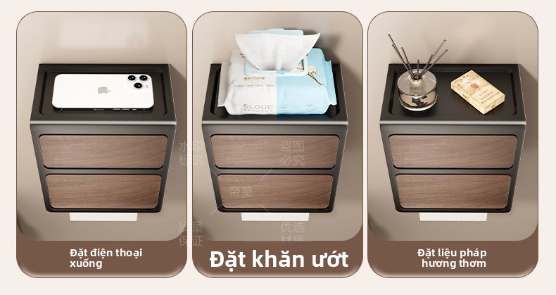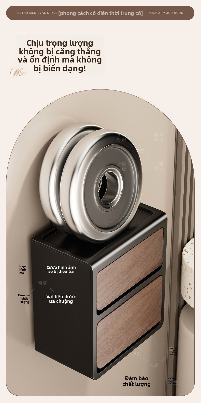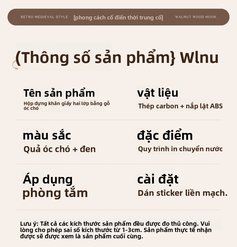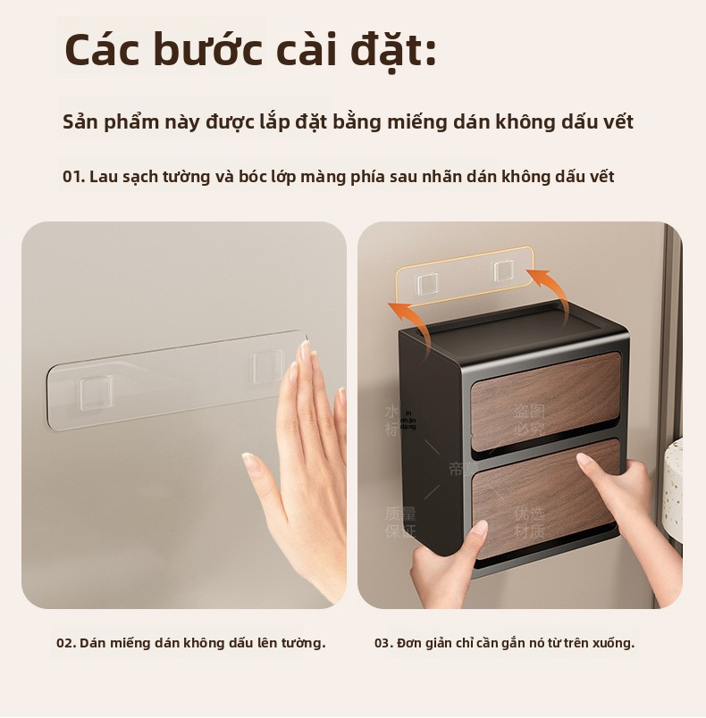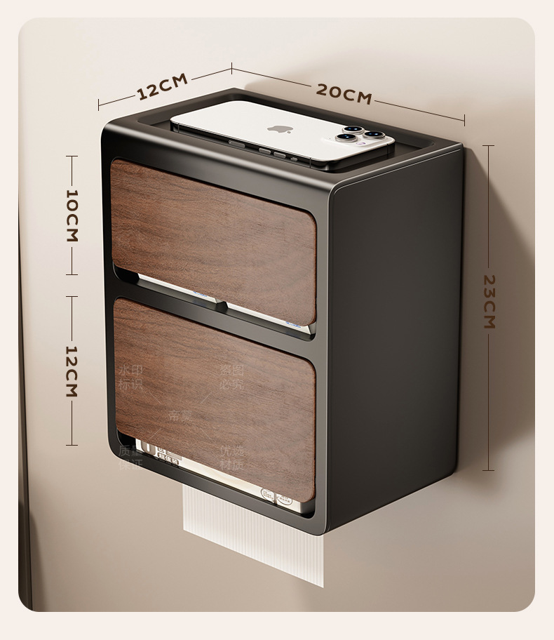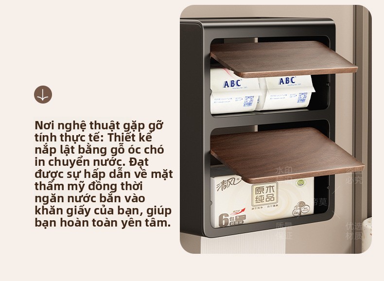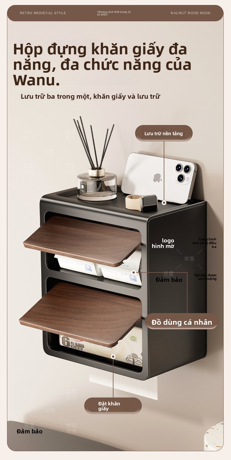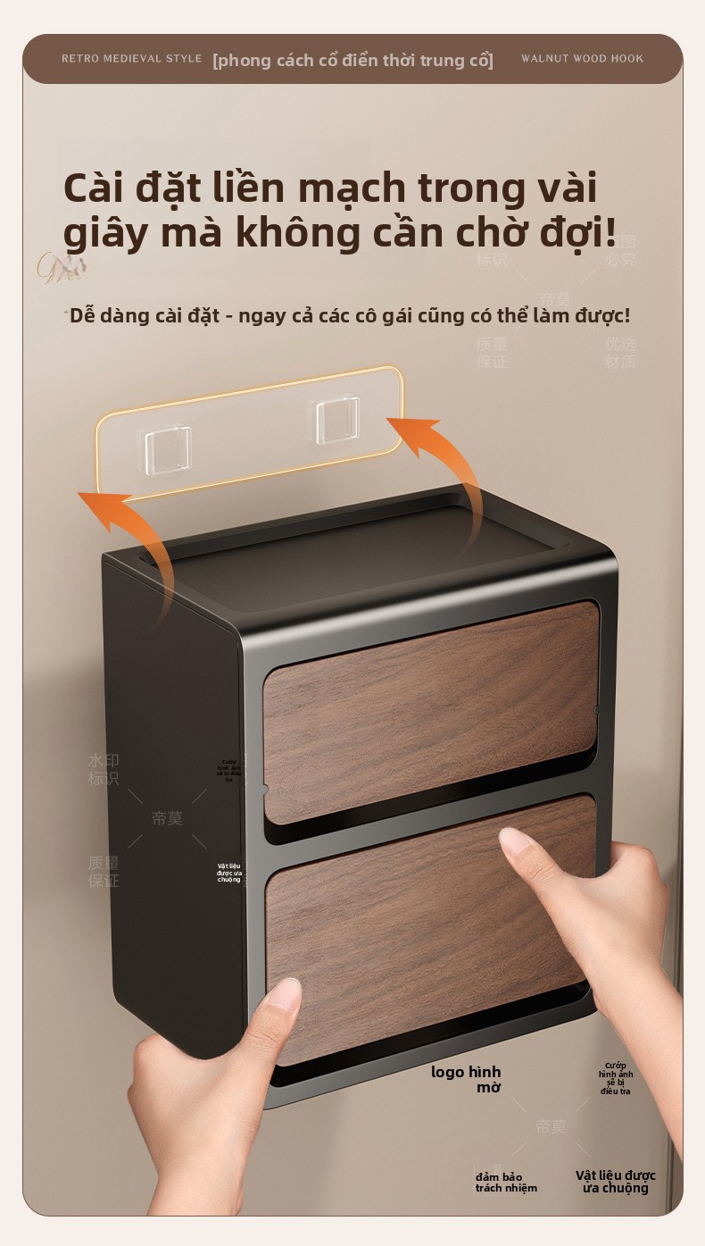 Hộp khăn giấy hai lớp treo tường hạt gỗ trung cổ nhà vệ sinh miễn phí đục lỗ giá đỡ giấy vệ sinh hộp