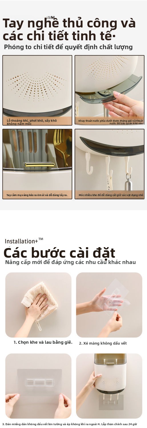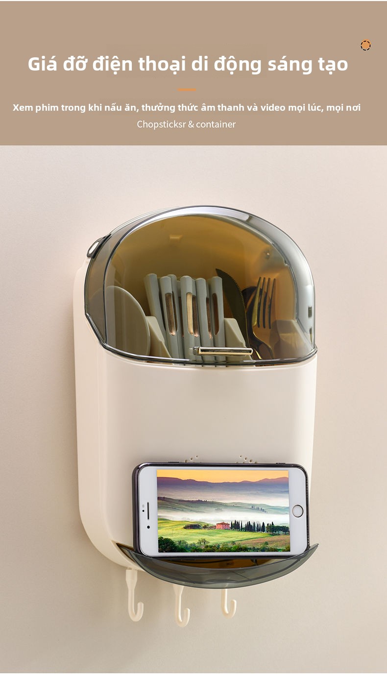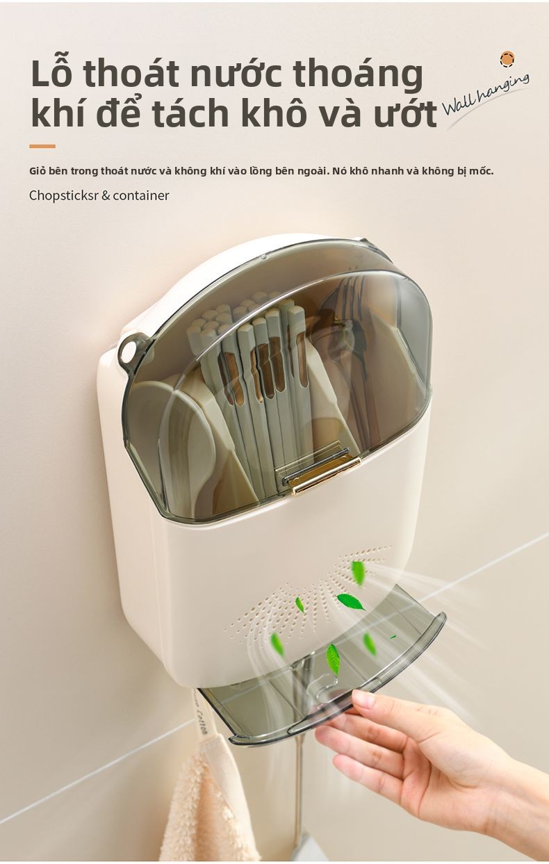 Hộp lưu trữ đũa mới cao cấp treo tường gia đình hộp đũa nhà bếp nhanh thìa kệ đũa giỏ đũa lồng