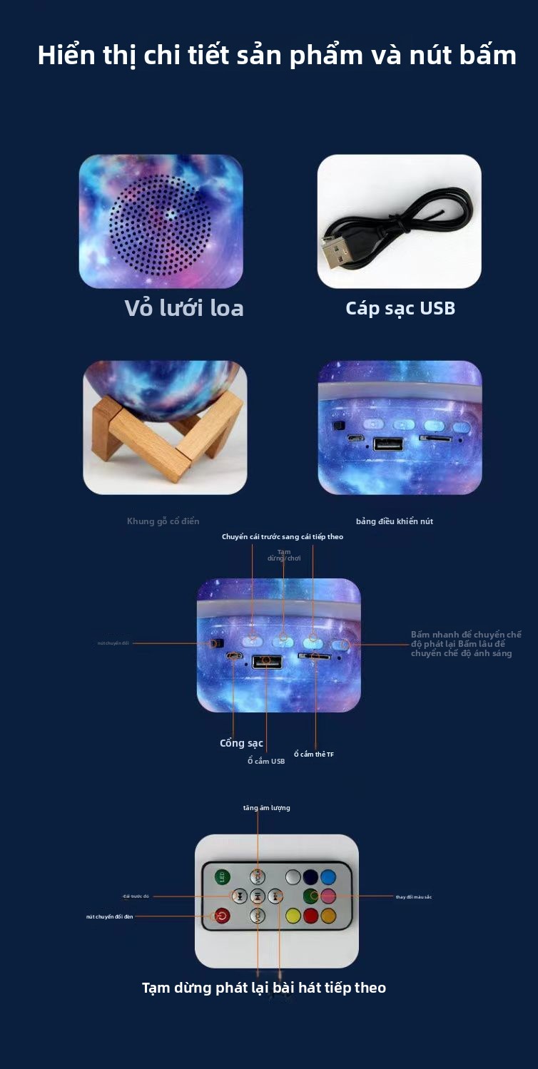 Loa Bluetooth Star mới đèn ngủ nhỏ loa siêu trầm âm thanh bầu không khí đèn bàn cao cấp tặng quà sin
