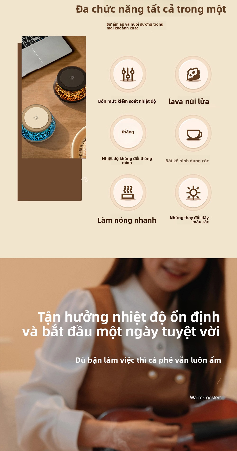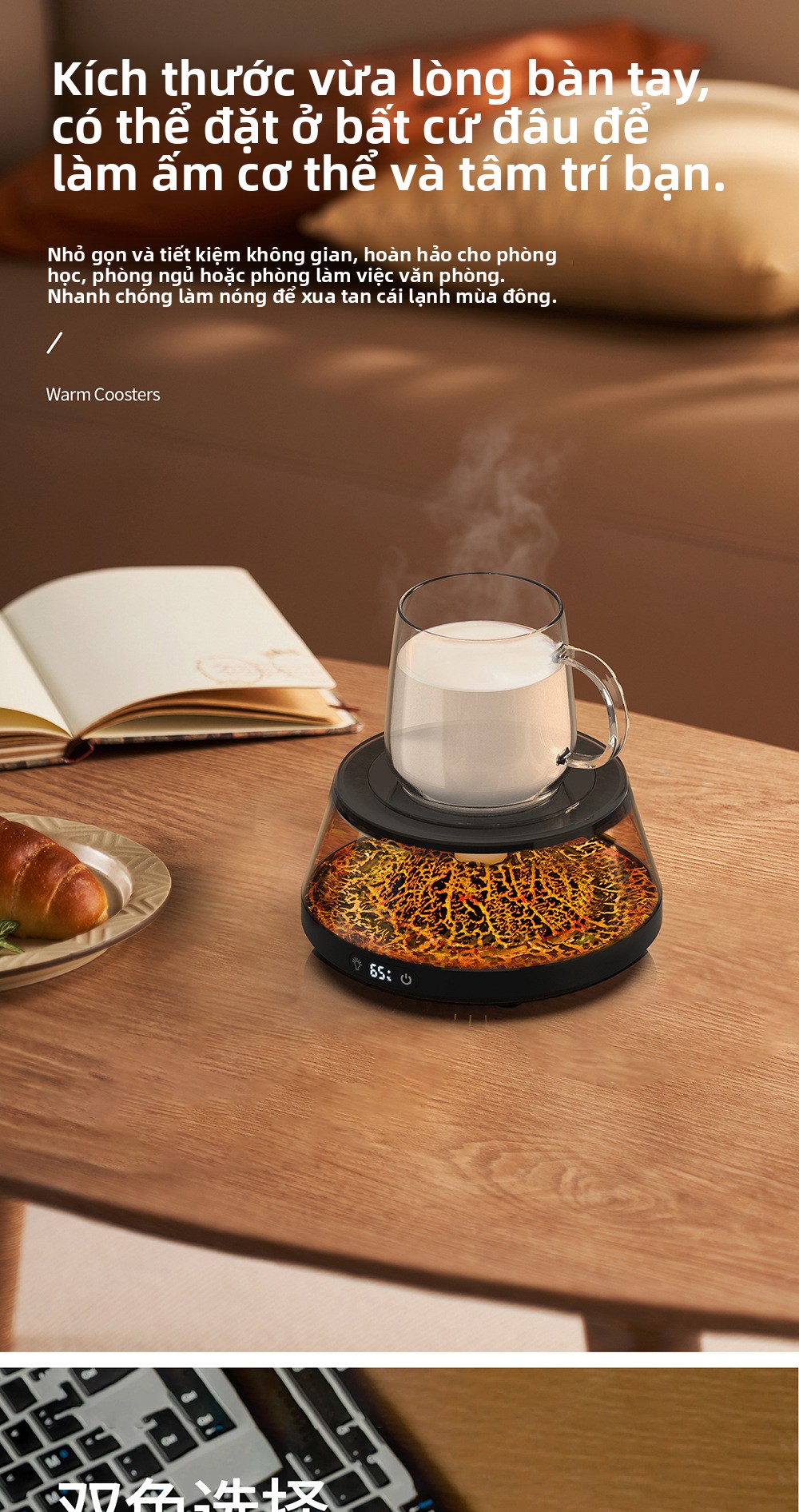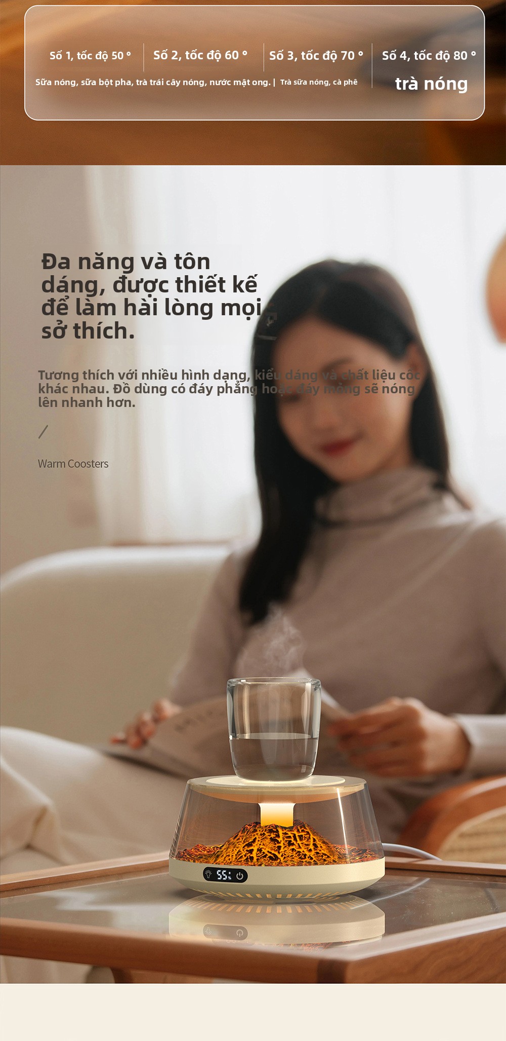 Máy làm nóng cốc nhiệt độ không đổi đế lót ly bốn bánh sưởi ấm giữ nhiệt thông minh kiểm soát nhiệt độ văn ph