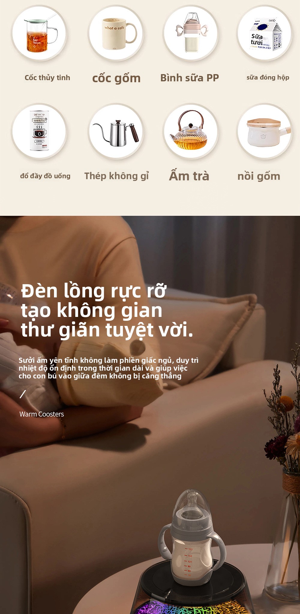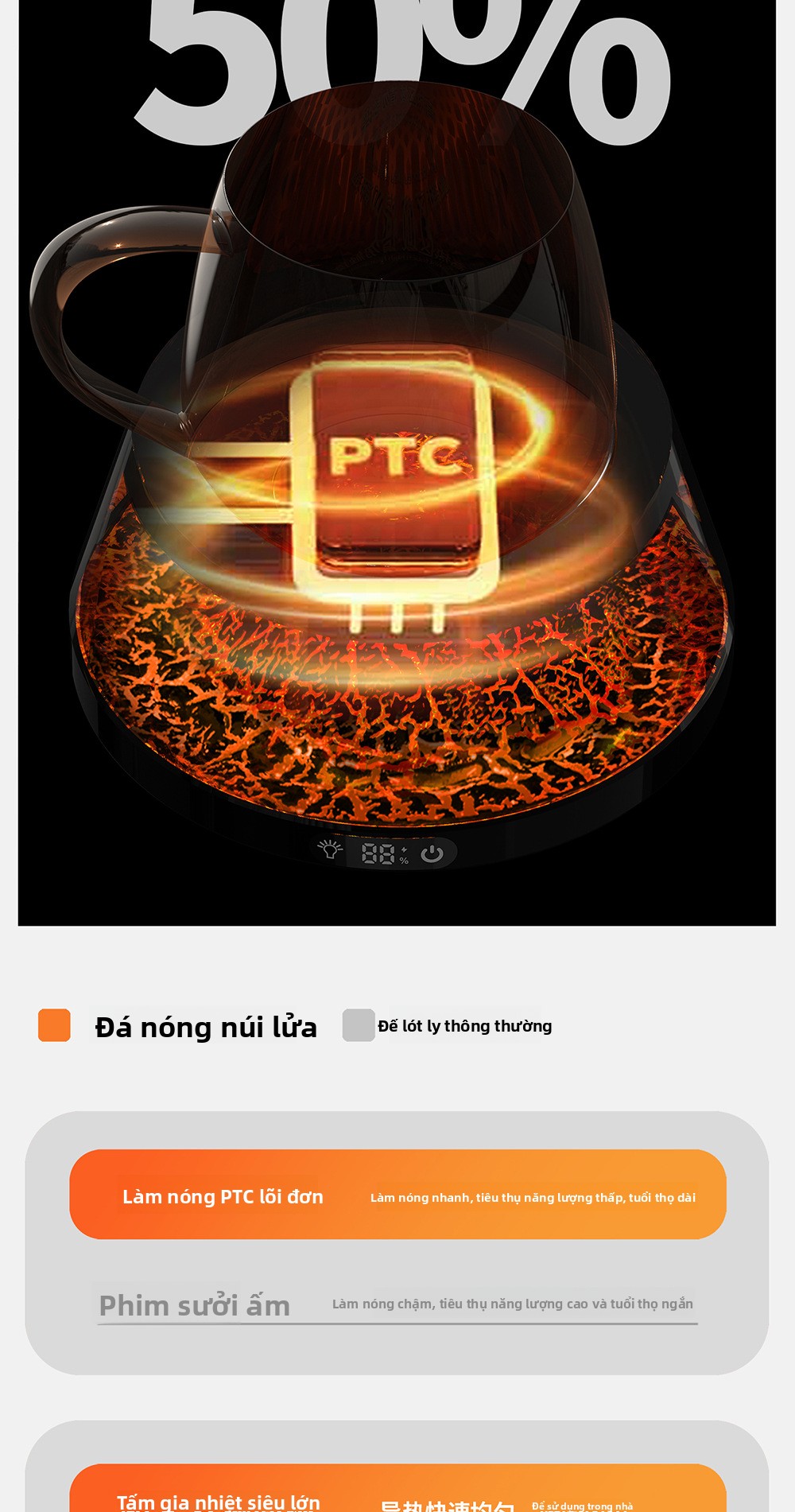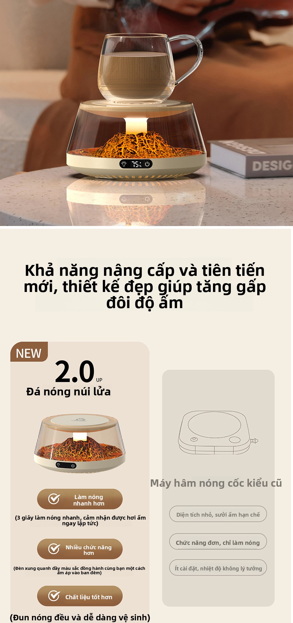 Máy làm nóng cốc nhiệt độ không đổi đế lót ly bốn bánh sưởi ấm giữ nhiệt thông minh kiểm soát nhiệt độ văn ph