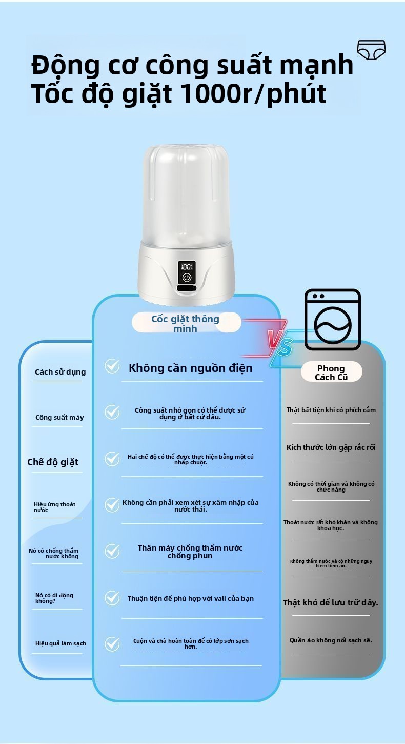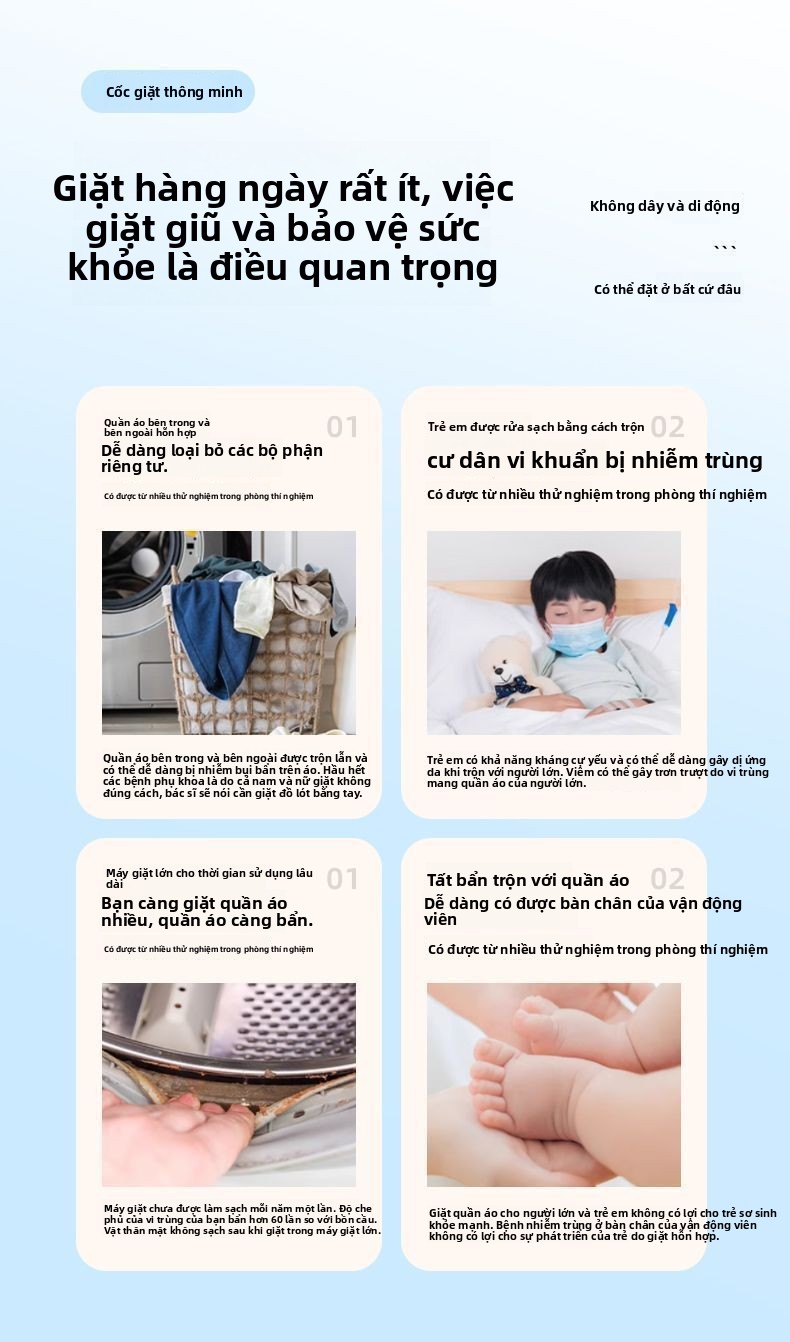 Máy giặt nhỏ mini khử trùng ánh sáng xanh máy giặt đồ lót, tất, quần lót chuyên dụng