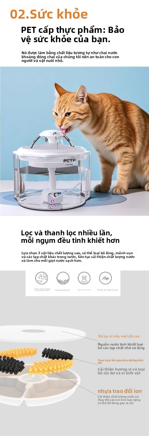 Máy uống nước PETF mèo uống nước khử trùng vật nuôi tự động tuần hoàn nước im lặng vật nuôi chó cho