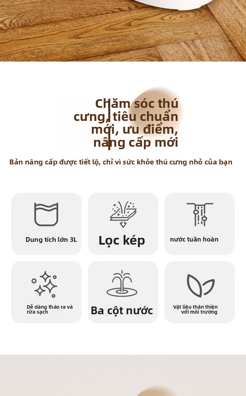 Máy uống nước thú cưng công suất lớn 3L mới tự động lọc tuần hoàn chống đen cằm mèo bát thú cưng máy