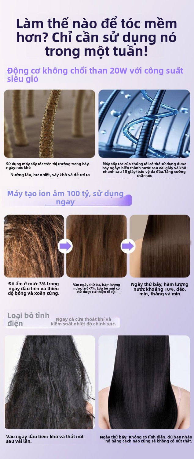 Máy sấy tóc điện hàng đầu với máy sấy tóc gia đình Hoa Cường Bắc, máy sấy tóc ion âm không lá tốc độ cao, máy sấy tóc im lặng