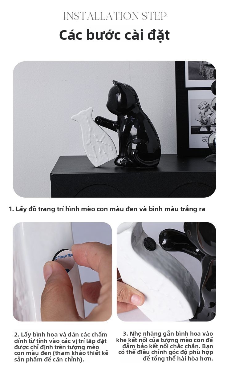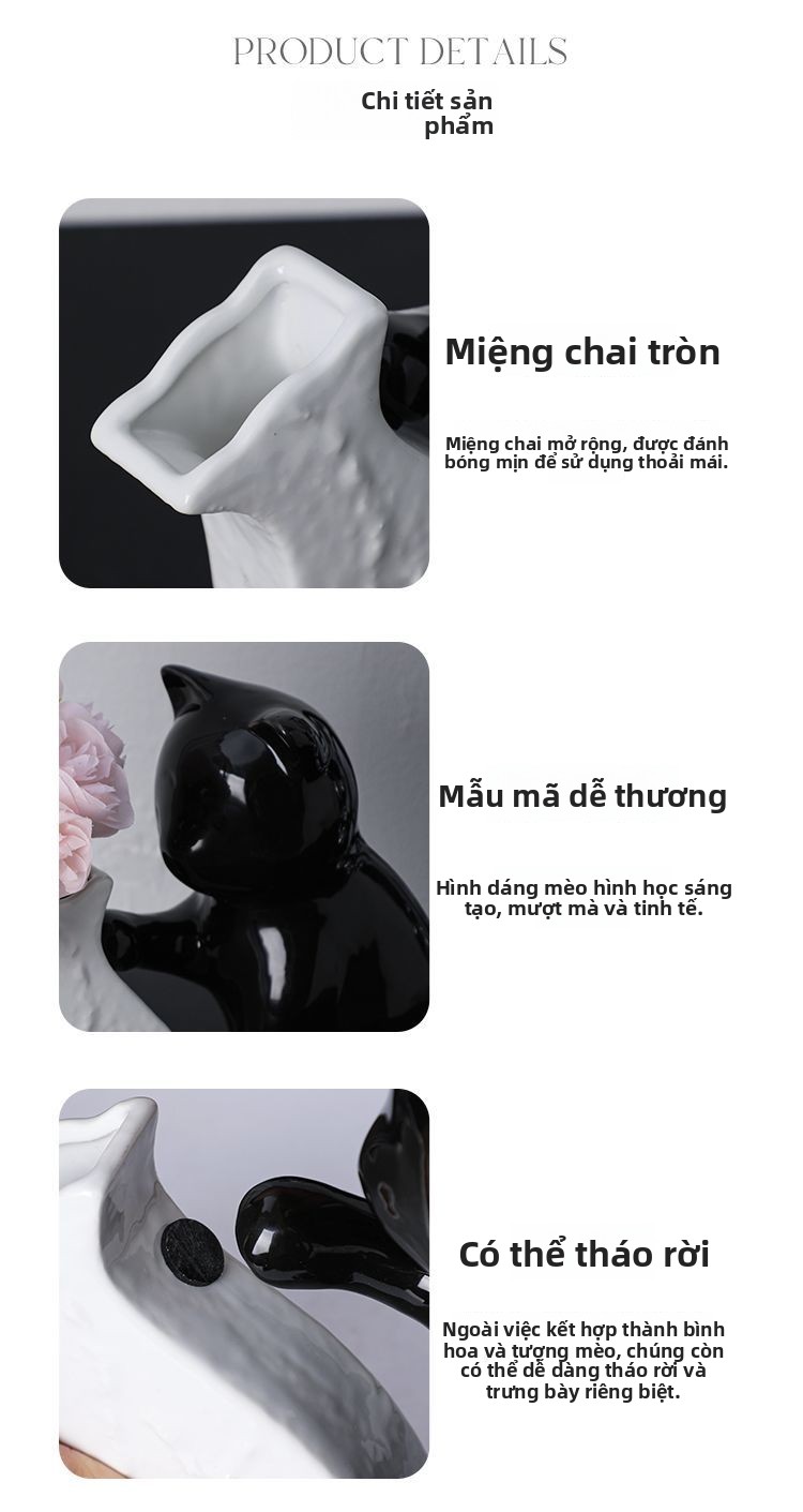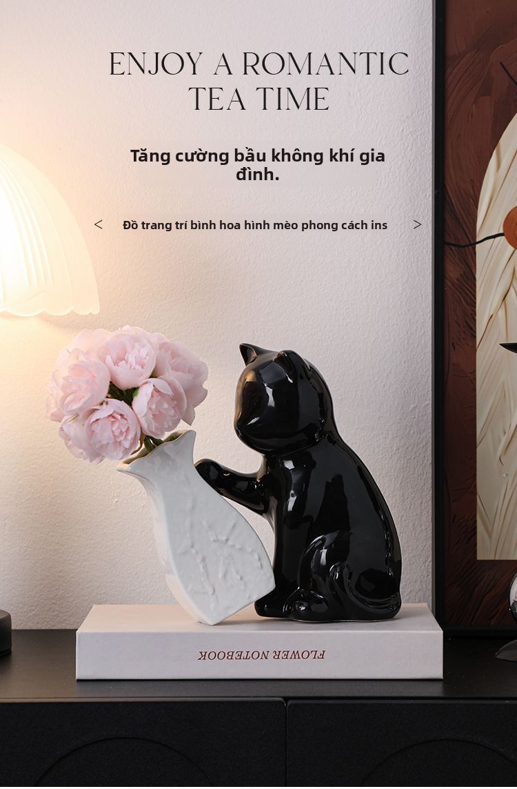 Bình hoa Mèo con dễ thương đẩy bình hoa cắm hoa bình hoa trang trí hoa giả hoa mô phỏng hoa khô phòng khách n