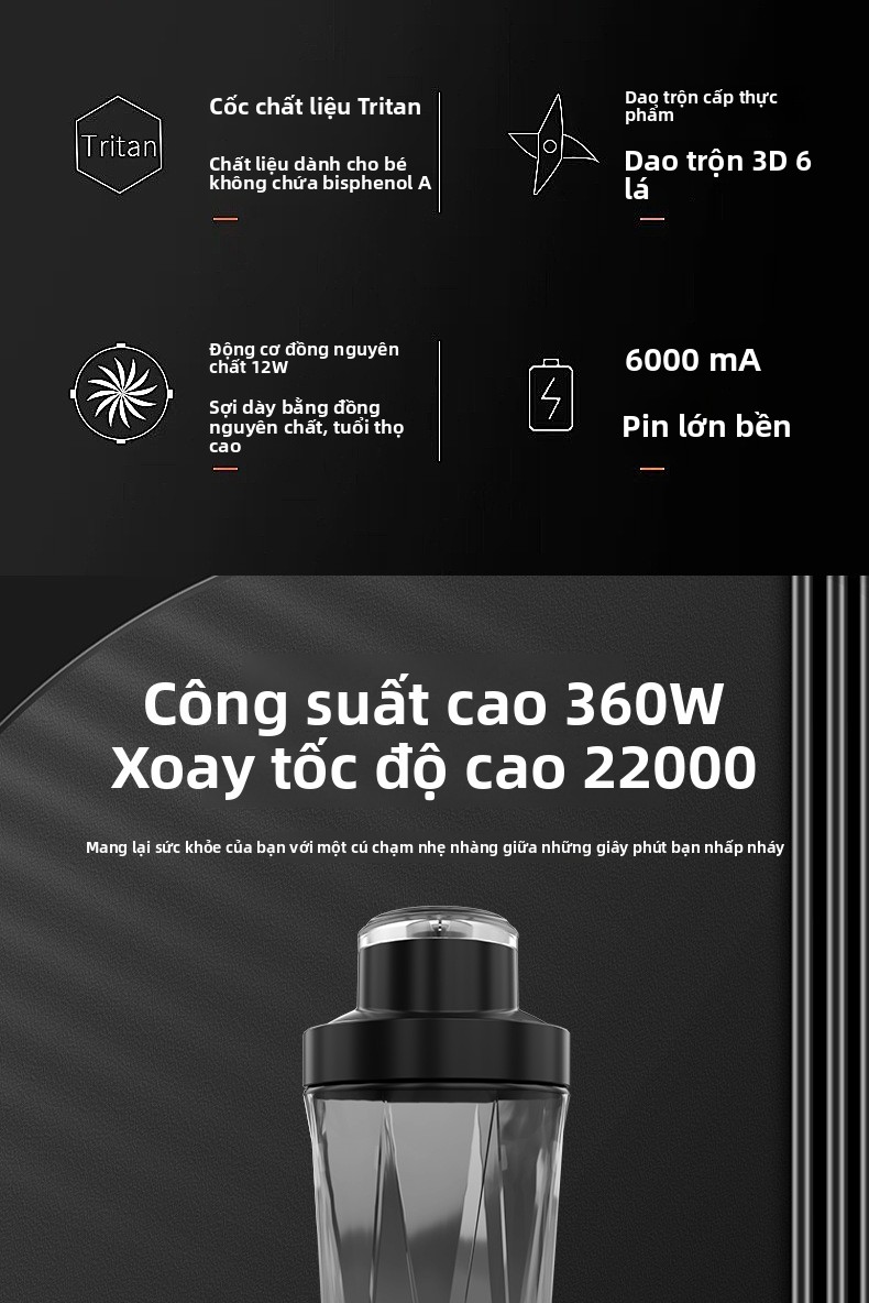 Máy ép trái cây không dây công suất cao xuyên biên giới pin 6000 mAh Máy ép trái cây di động mới của