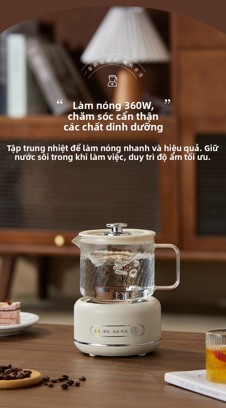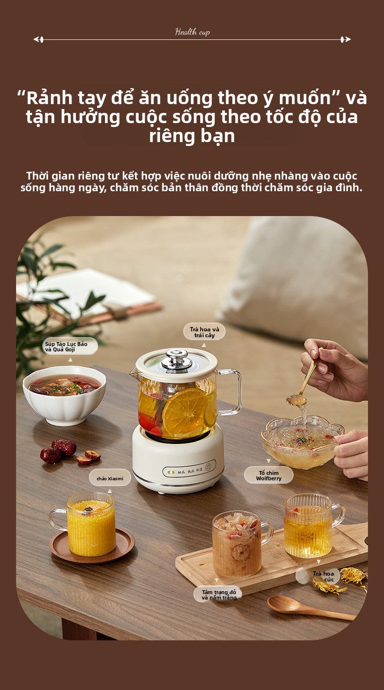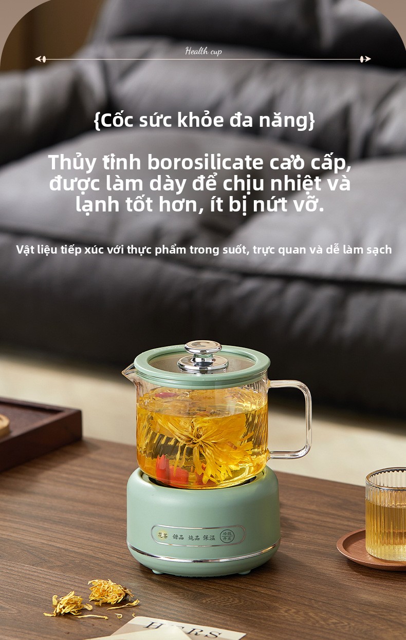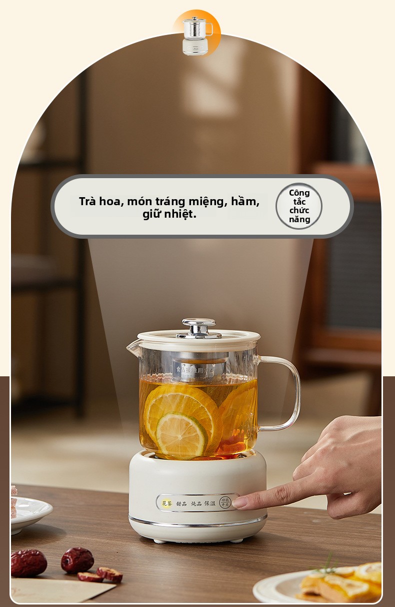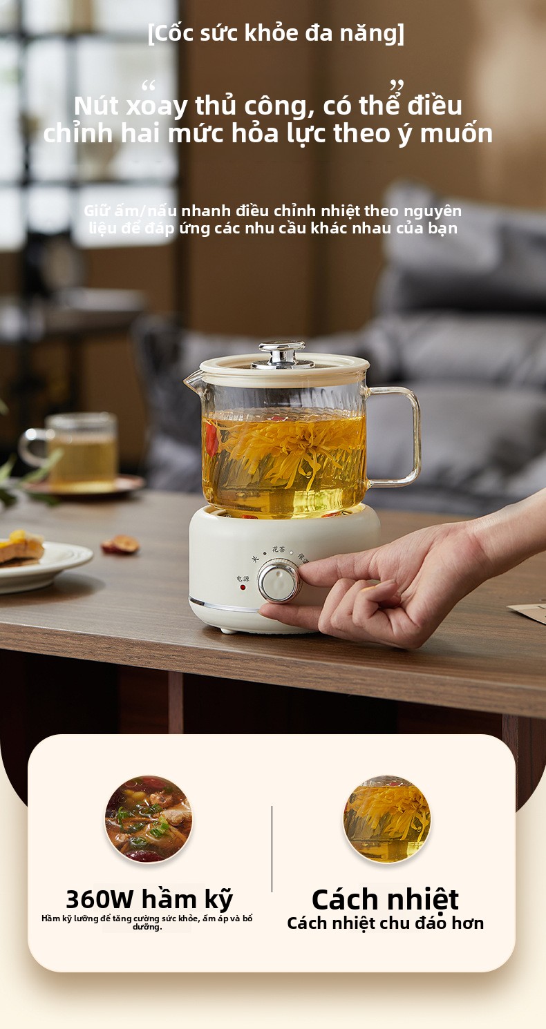 Nồi hầm một ấm nhiệt độ không đổi nhỏ văn phòng thủy tinh đun nước đa chức